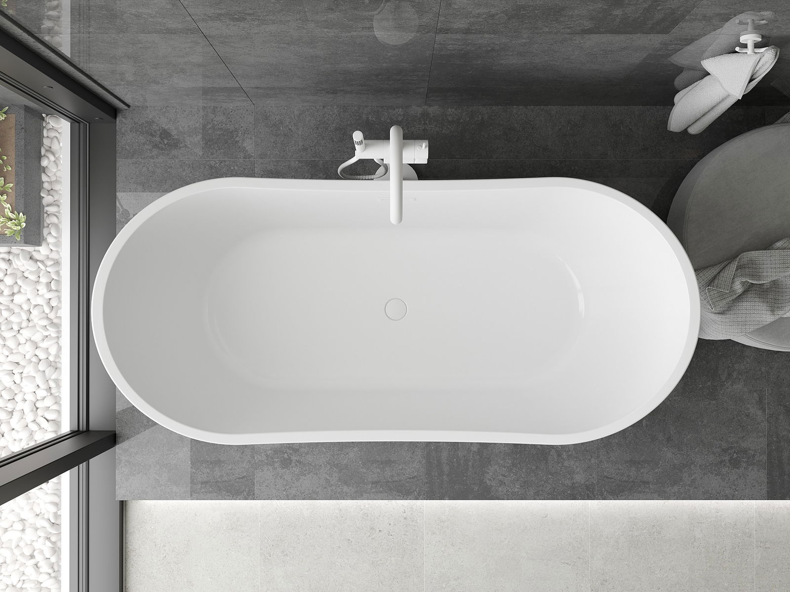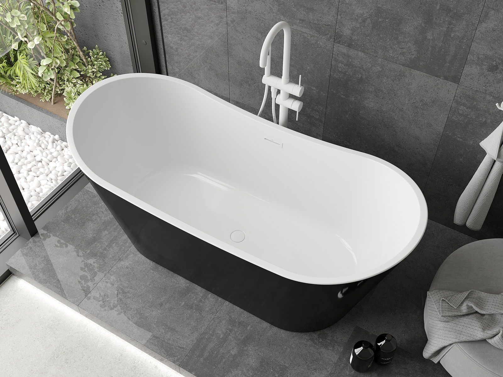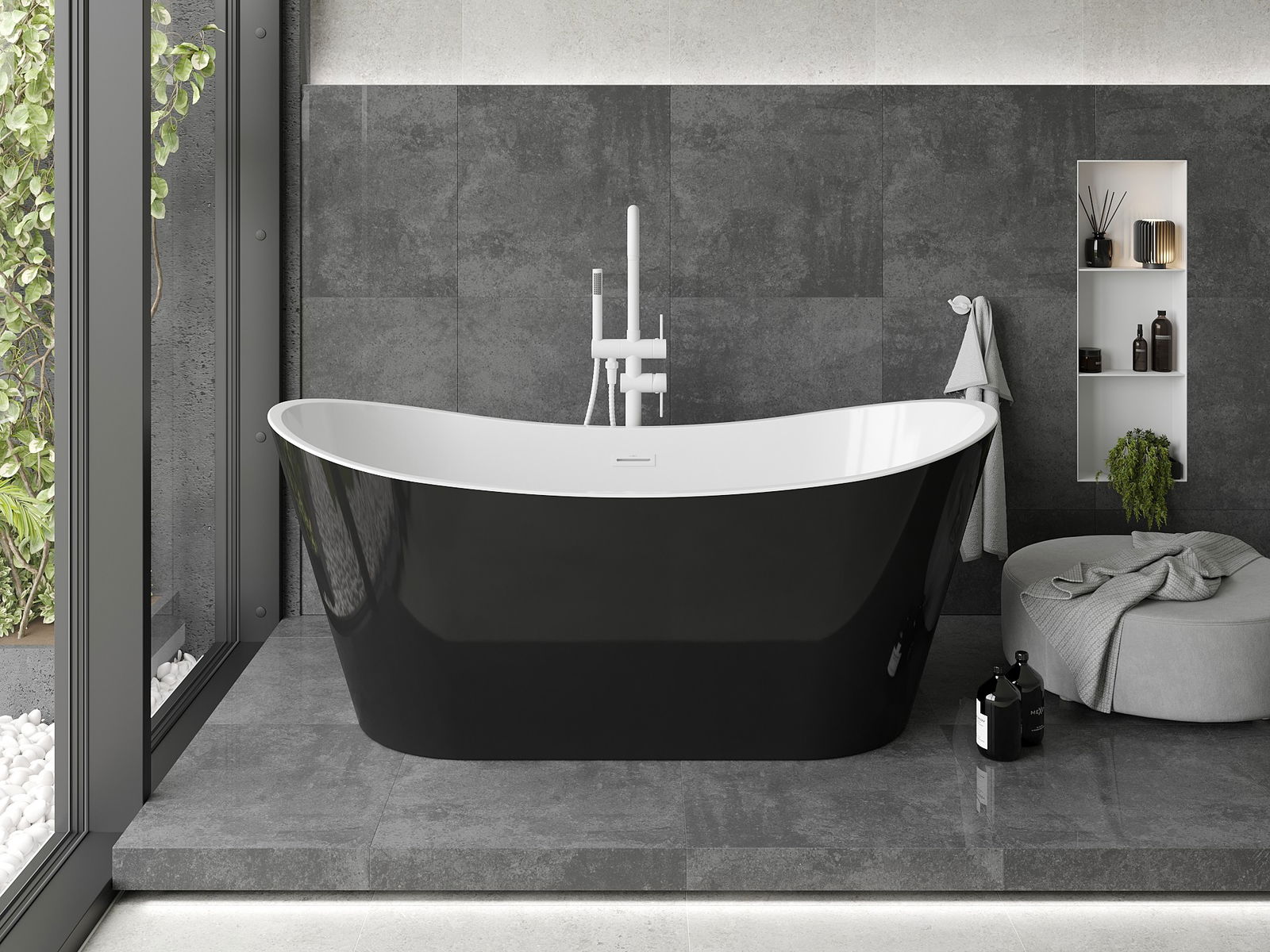 The freestanding bathtub in white-black from the Montana series combines elegance with functionality. Its oval shape and glossy surface add modernity to any bathroom. With dimensions of 180 x 80 cm and a depth of 44.5 cm, it ensures comfort during bathing. Made of sanitary acrylic, it is resistant to dulling and UV rays. The bathtub is equipped with an overflow hole and siphon, making it ready for installation. The height of the bathtub is 72 cm, which facilitates use.