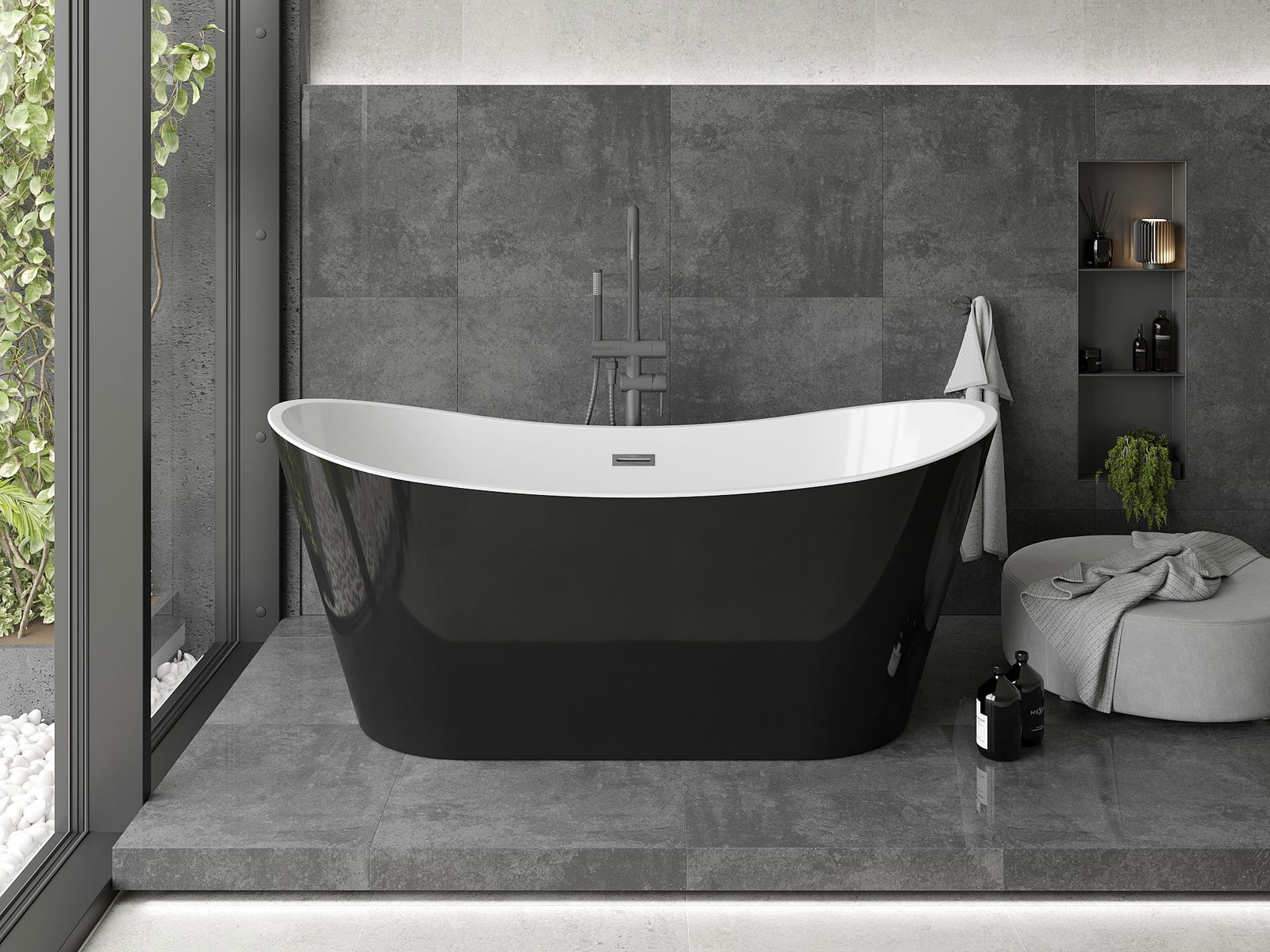 Mexen Montana is an elegant freestanding bathtub measuring 180 x 80 cm, ideal for modern bathrooms. Made of sanitary acrylic, it is characterized by durability and resistance to tarnishing and UV radiation. Its oval shape and glossy surface add style. The bathtub is available in white and black colors with a unique brushed gun gray finish. An additional advantage is the overflow hole and a complete set of siphon and click-clack plug.