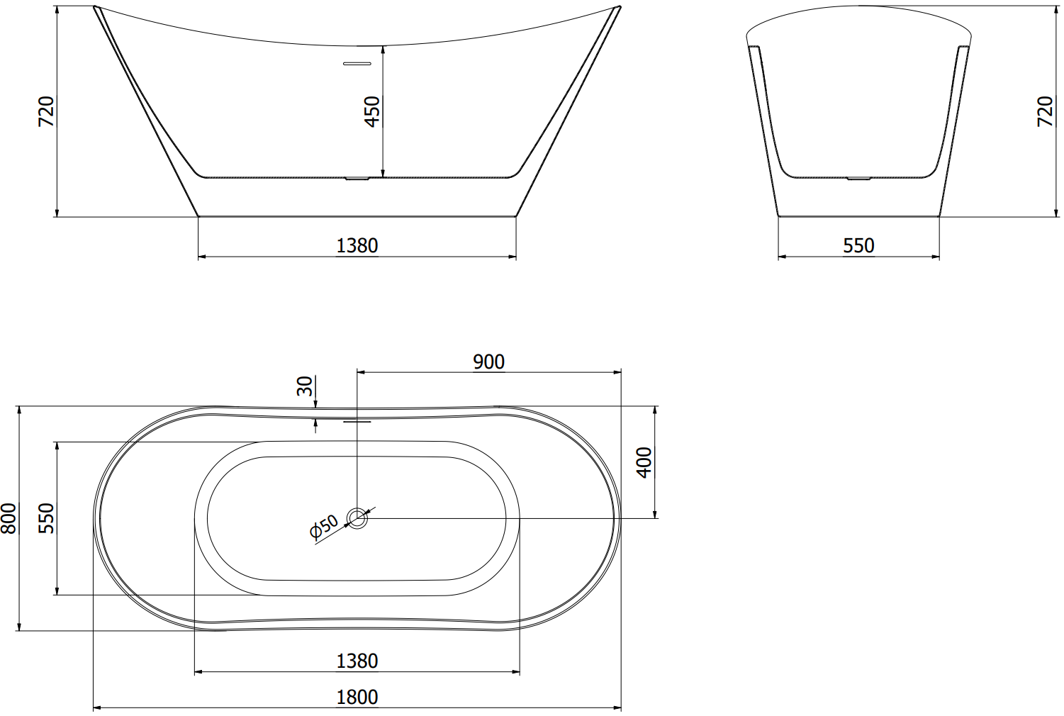 Mexen Montana is an elegant freestanding bathtub measuring 180 x 80 cm, in striking white-black color scheme, adding style to any bathroom. Made from high-quality sanitary acrylic, it ensures durability and easy maintenance. It is equipped with an overflow hole and comes with a siphon and click-clack plug. Its oval shape and brushed nickel finish make it not only functional but also aesthetically pleasing. Excellent resistance to dulling and UV radiation makes it an ideal choice for demanding users.