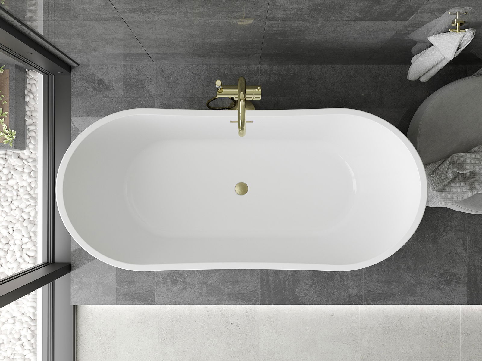 Mexen Montana freestanding bath 180 x 90 cm, white, brushed gold overflow - 52011809000-55