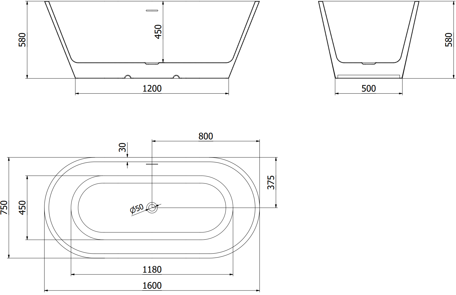 The overflow opening is referred to as the "safety opening". It allows excess water to escape, protecting the bathroom from flooding. This is a safe and practical solution that lets you enjoy a bath without worrying about the water level rising.