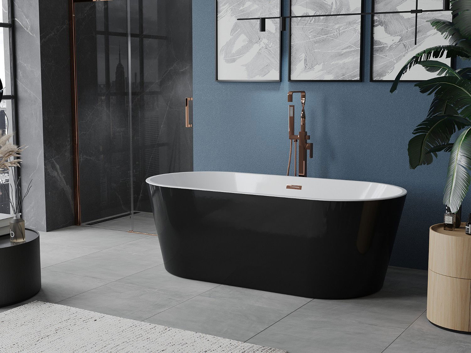 Mexen Luna 170 x 80 cm Free-standing Bath, White/Black, Overflow Rose Gold - 52031708075-60