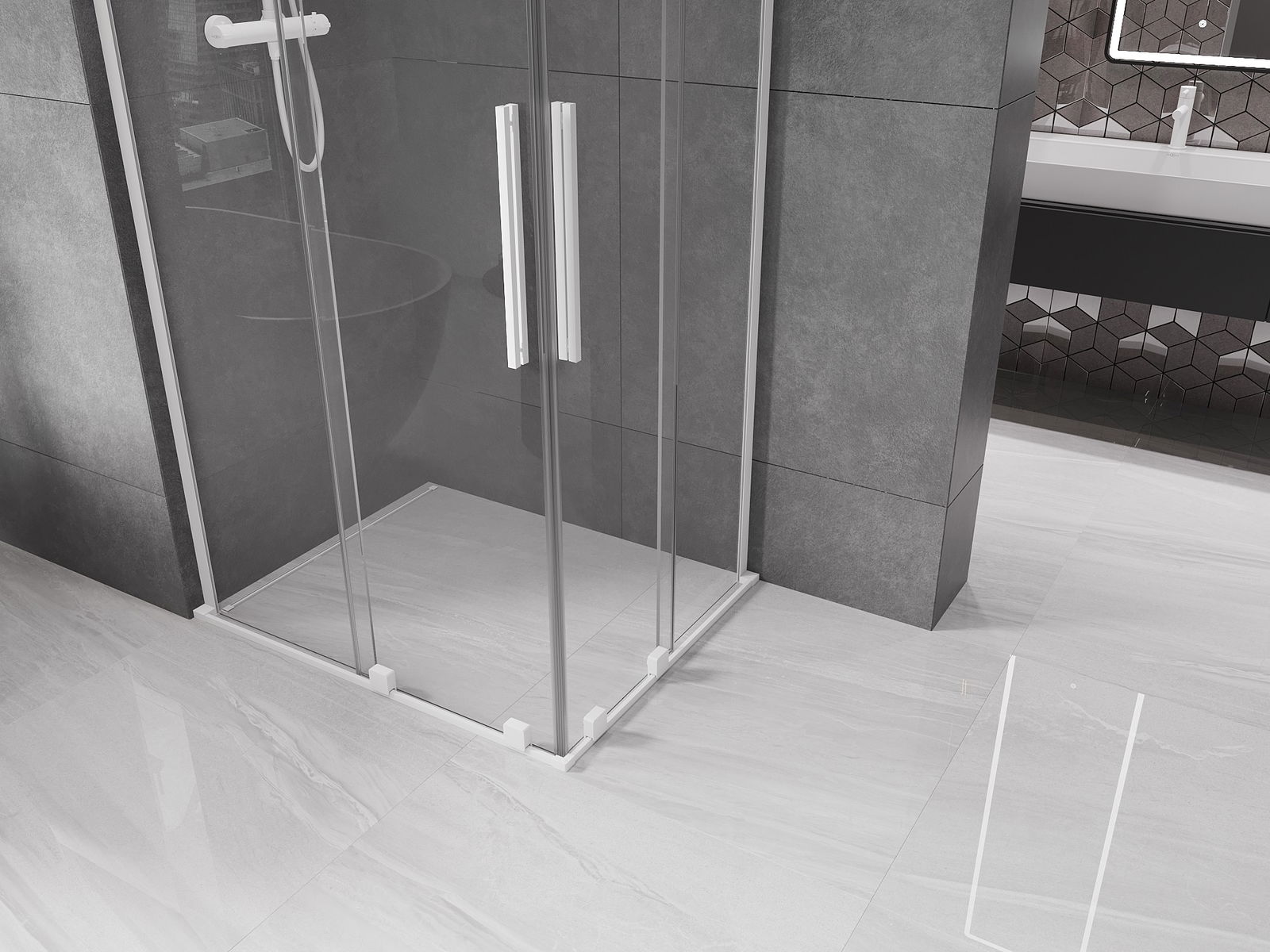 Mexen Velar L Duo sliding shower cabin 90 x 80 cm, transparent, white - 871-090-080-02-03-20