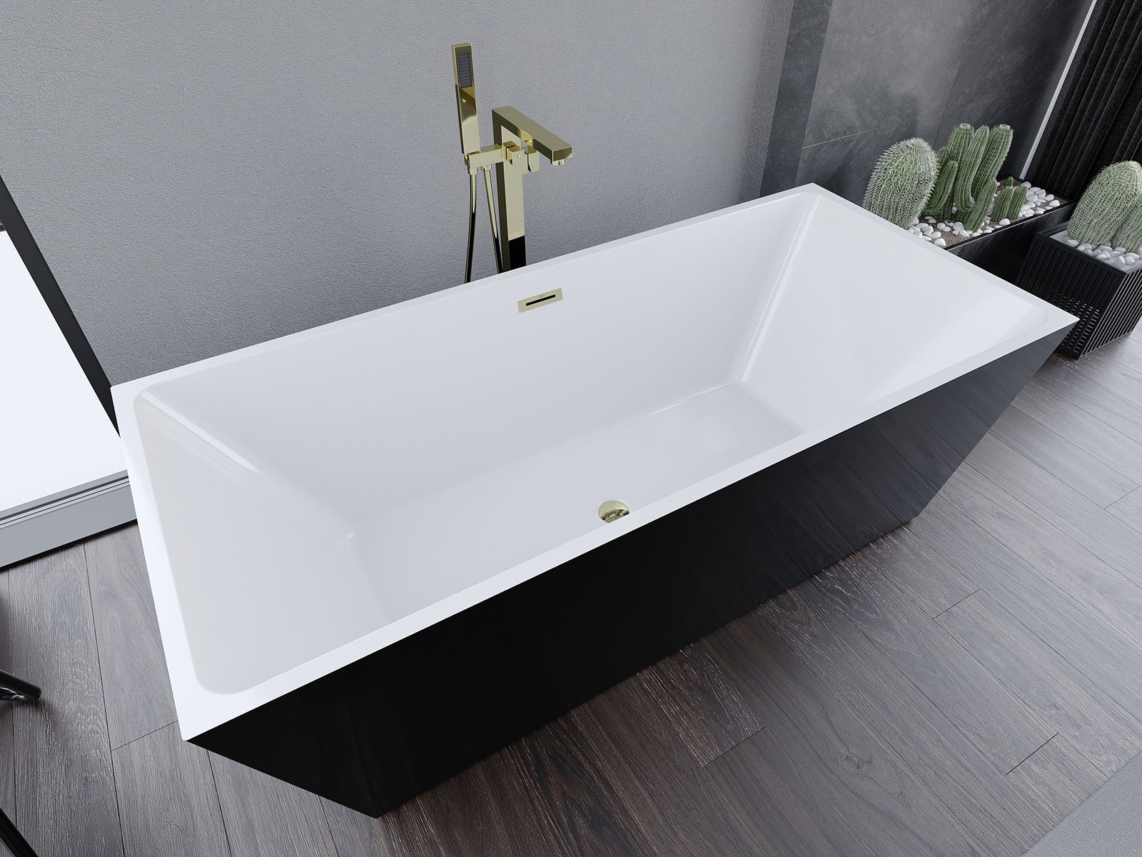 Mexen Lita 170 x 75 cm Freestanding Bath, White/Black, Gold Overflow - 52121707575-50