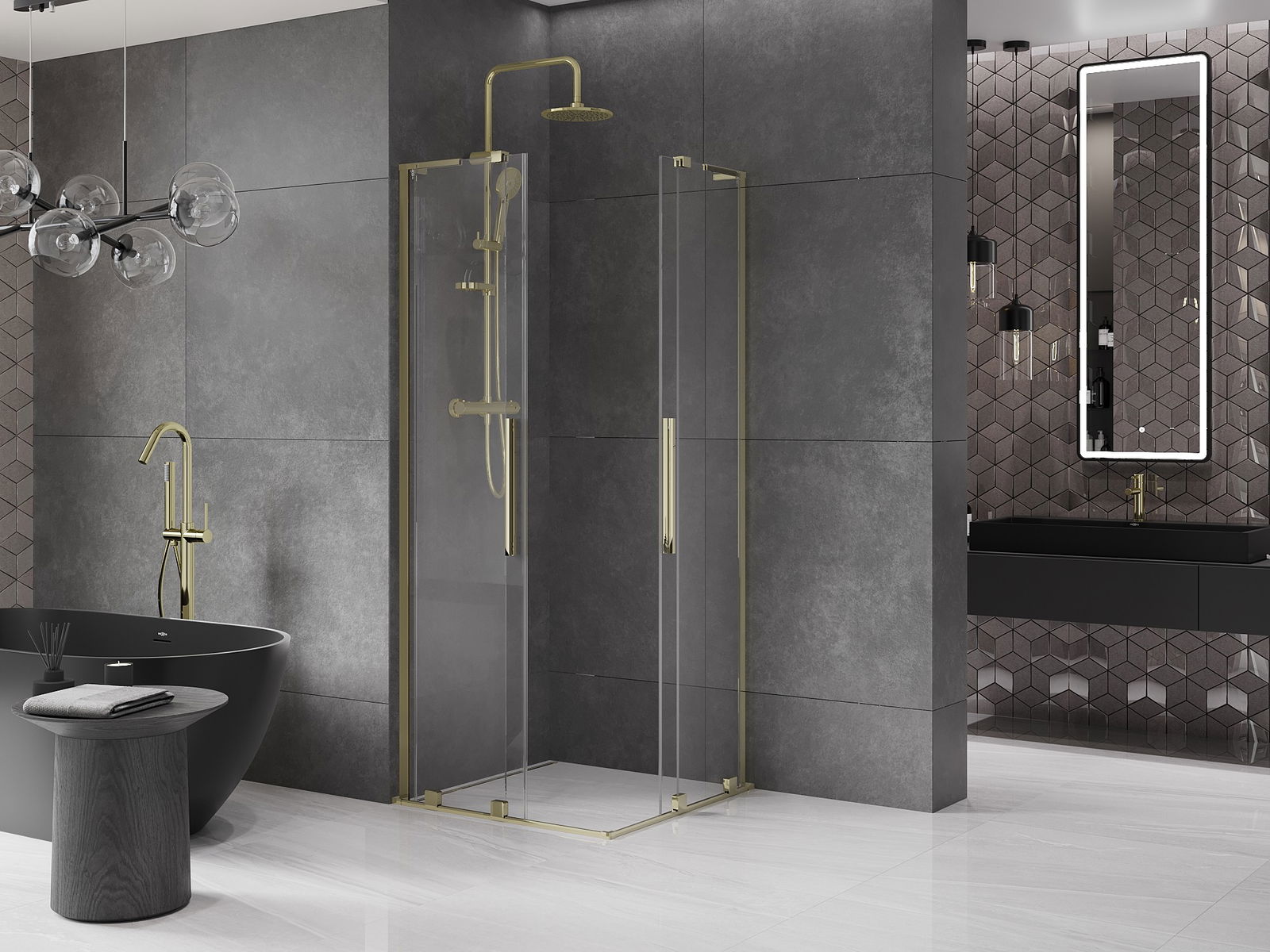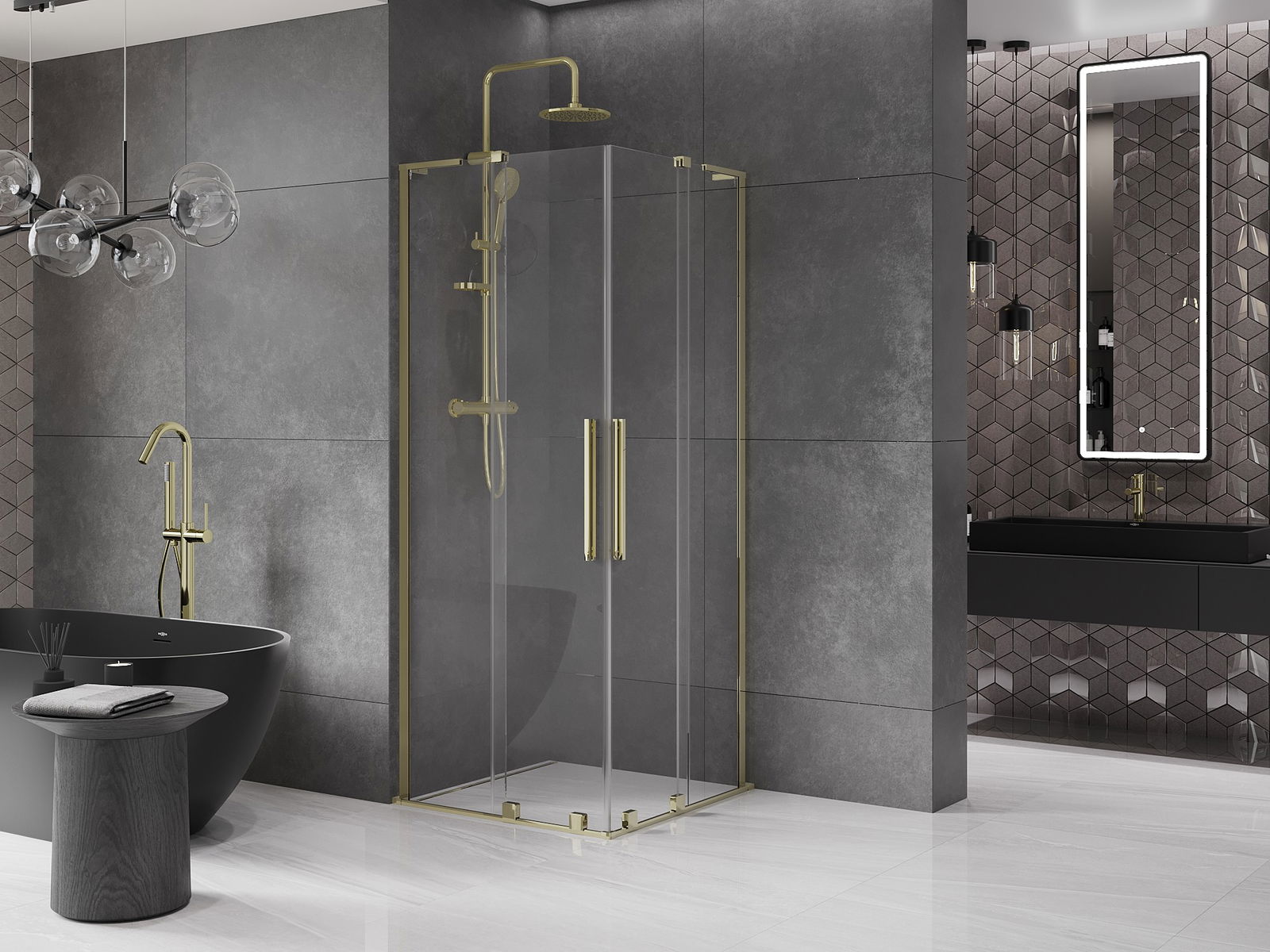 Mexen Velar L Duo Sliding Shower Enclosure 80 x 80 cm, Transparent, Gold - 871-080-080-02-03-50
