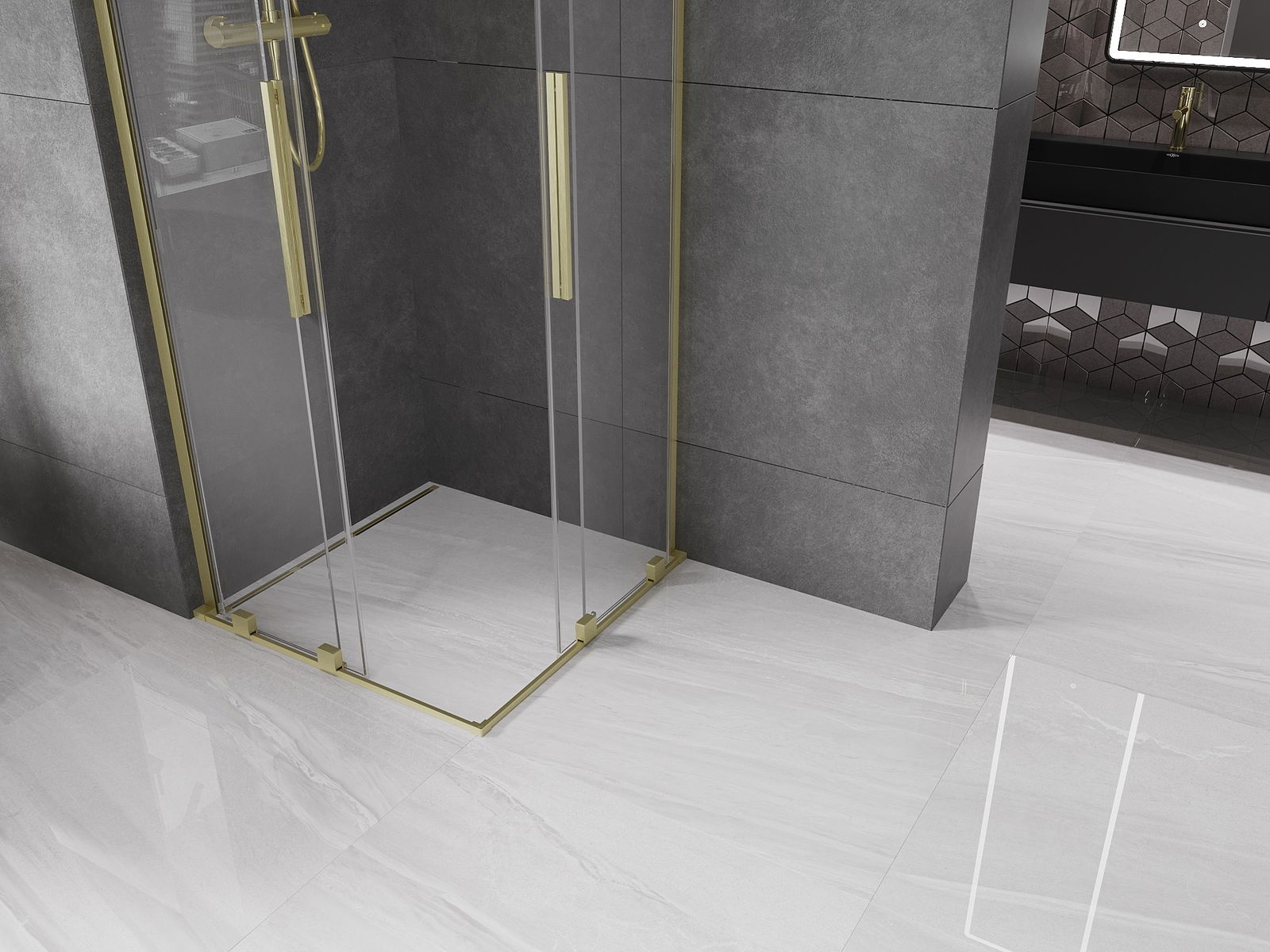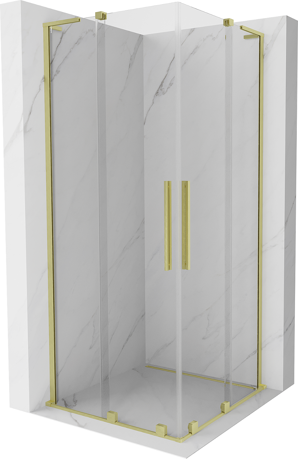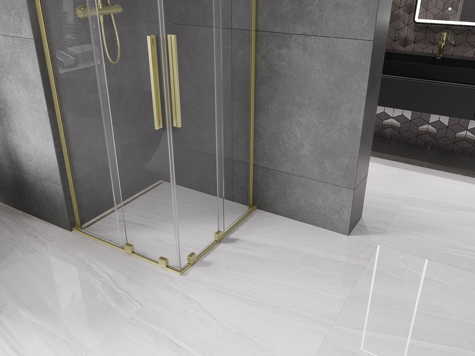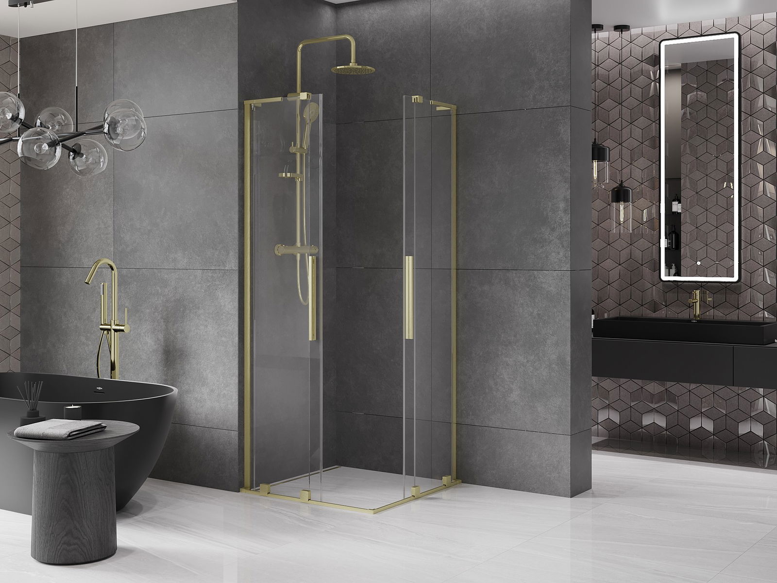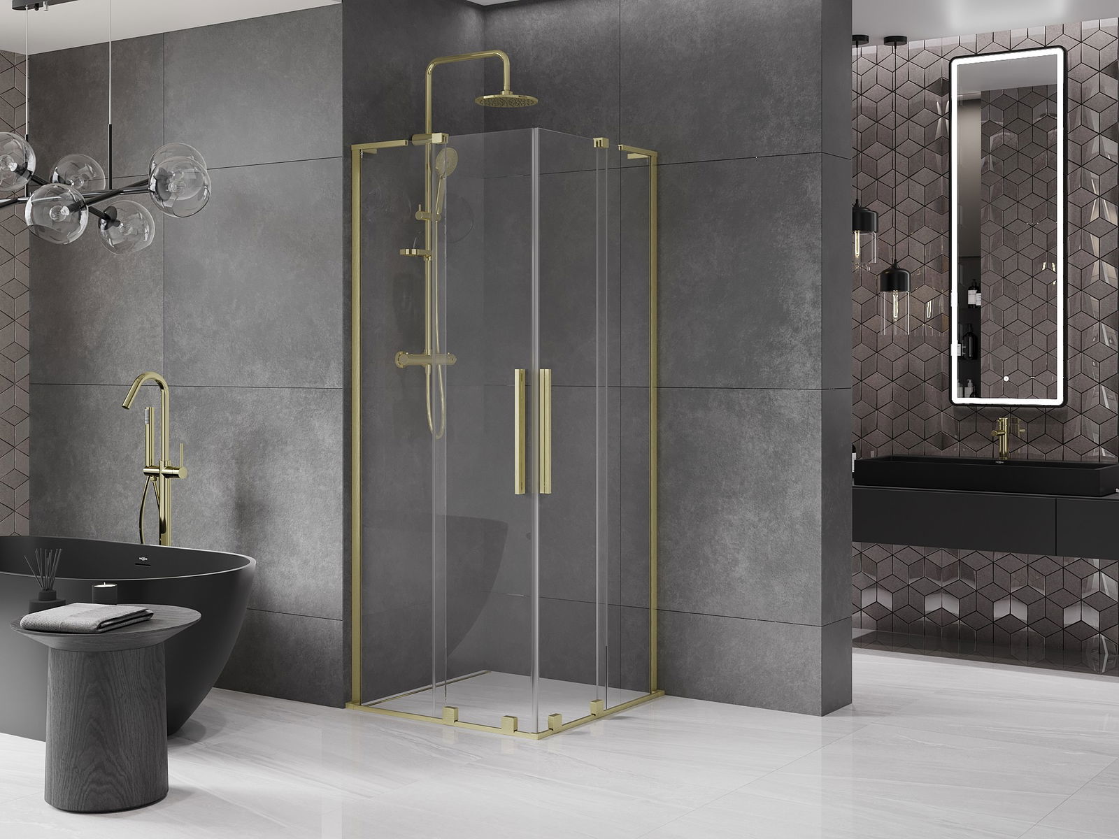 Mexen Velar L Duo sliding shower enclosure 90 x 90 cm, transparent, brushed gold - 871-090-090-02-03-55