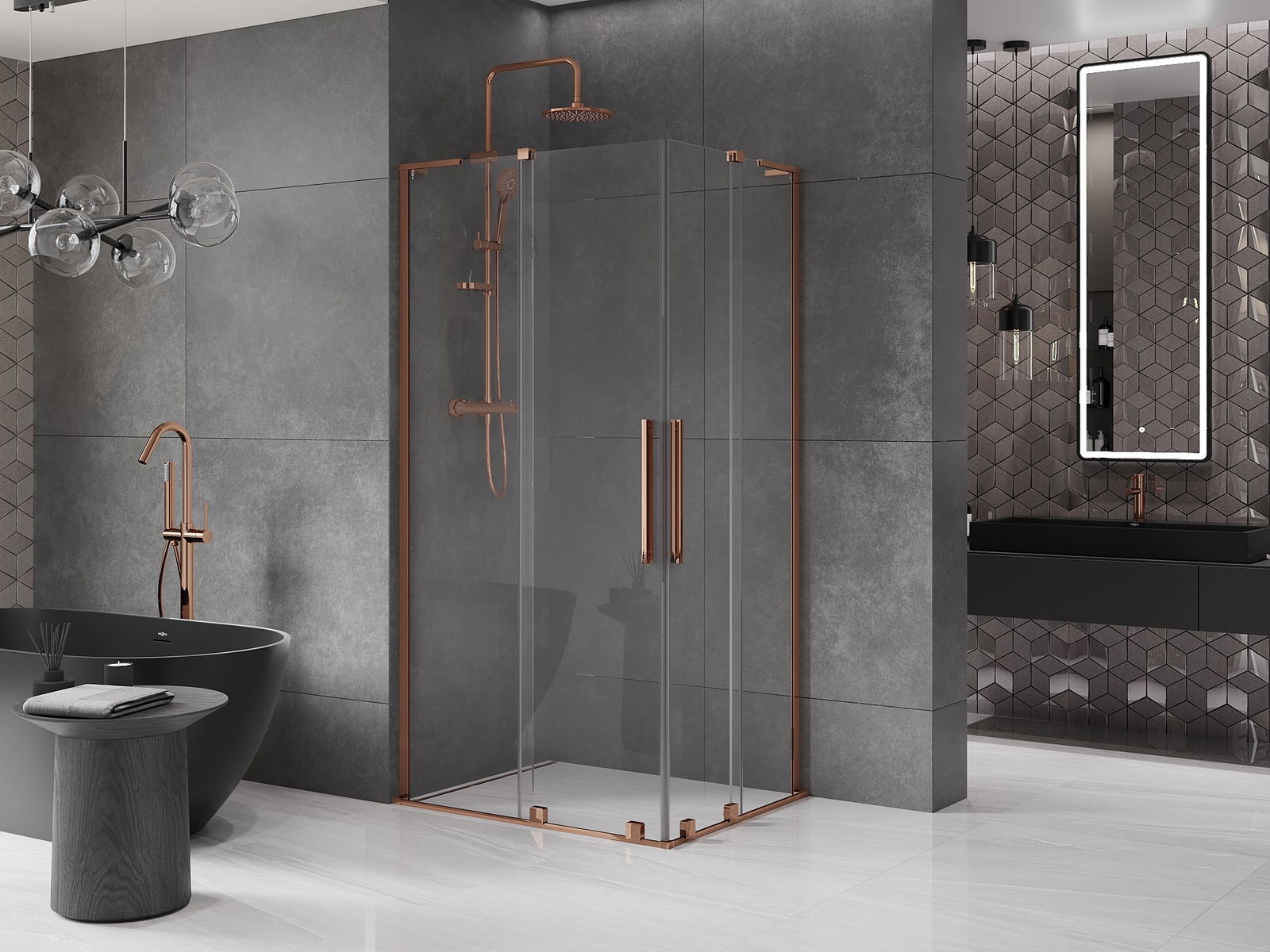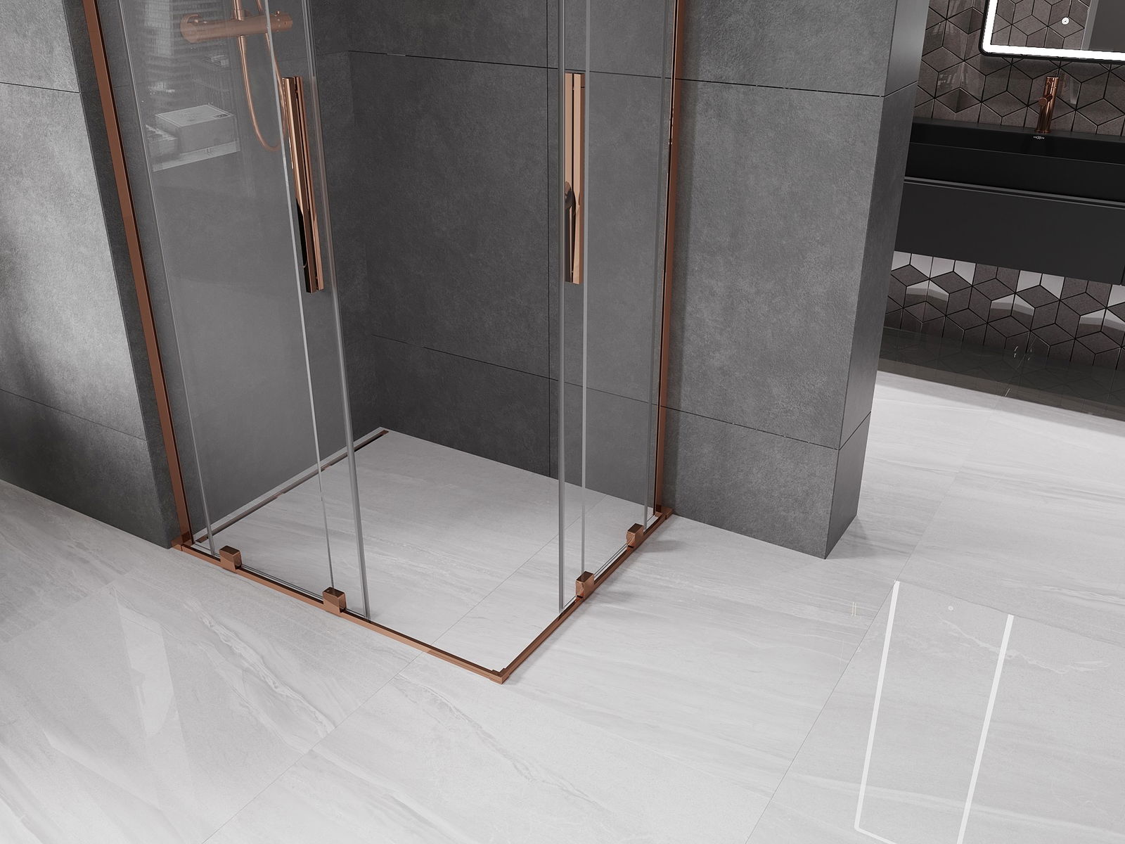 Mexen Velar L Duo sliding shower enclosure 90 x 80 cm, transparent, rose gold - 871-090-080-02-03-60