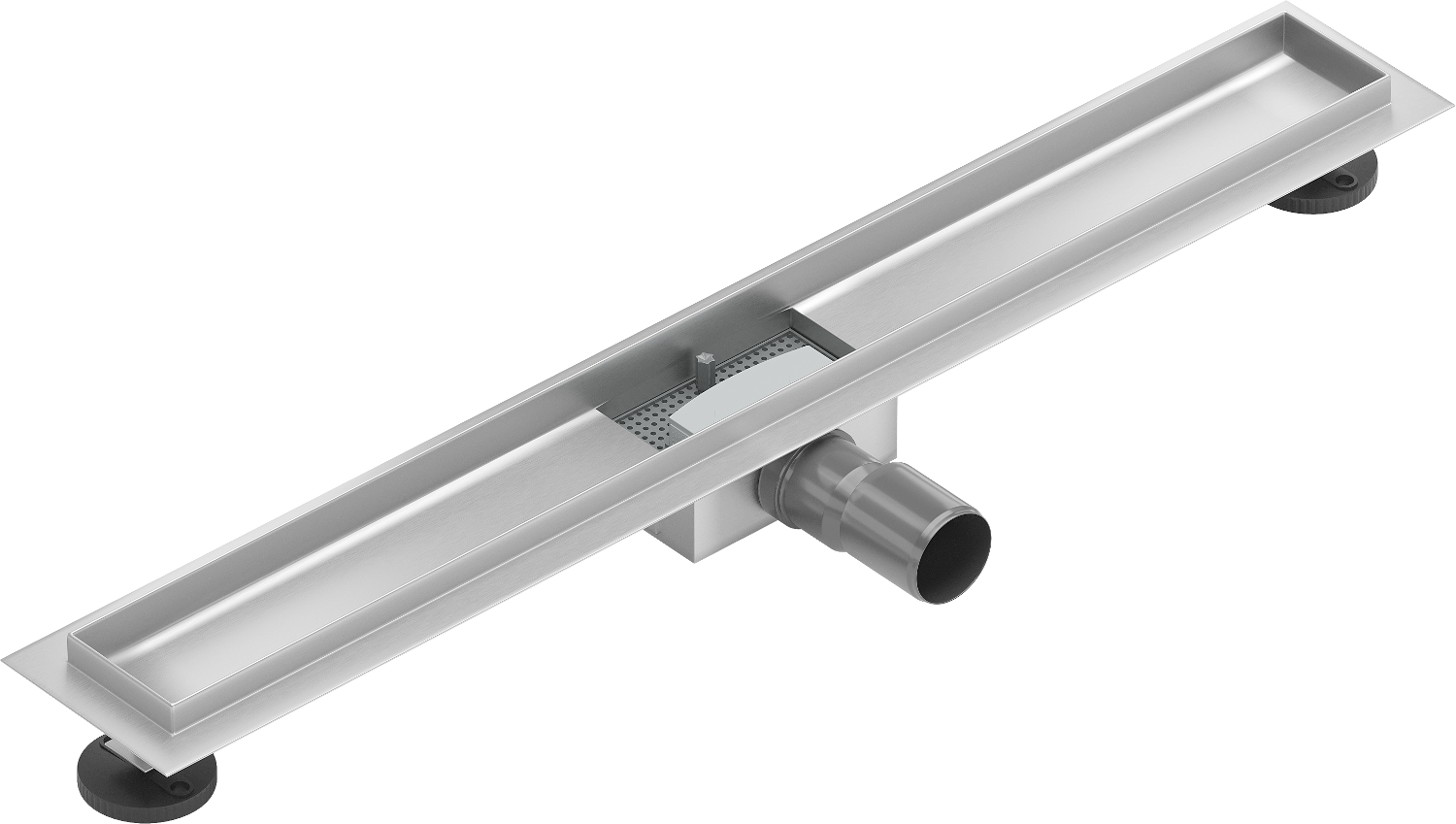 The linear drain is mounted at a depth of only 52 mm. The low depth allows for easier surface preparation for the drain installation and easy leveling, ensuring high aesthetics and effective water drainage.