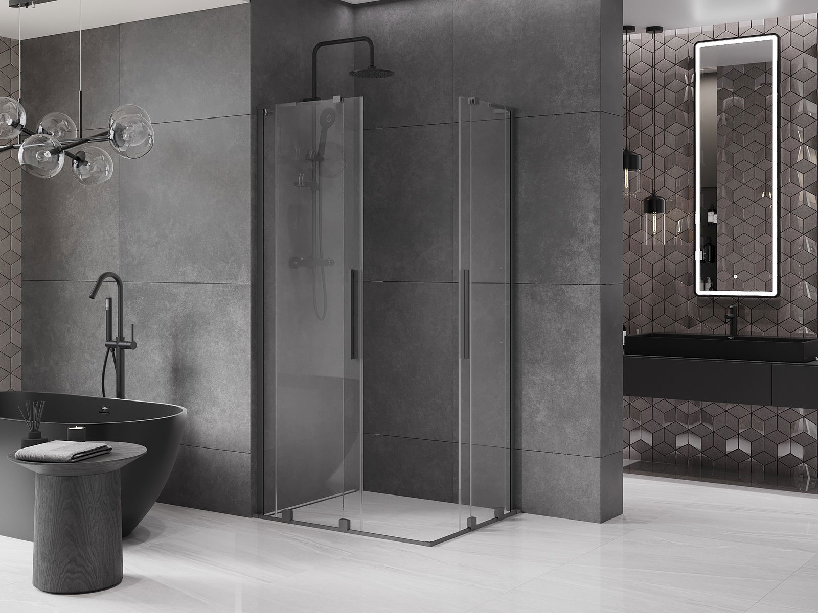 Mexen Velar L Duo sliding shower enclosure 90 x 80 cm, transparent, gun metal - 871-090-080-02-03-95