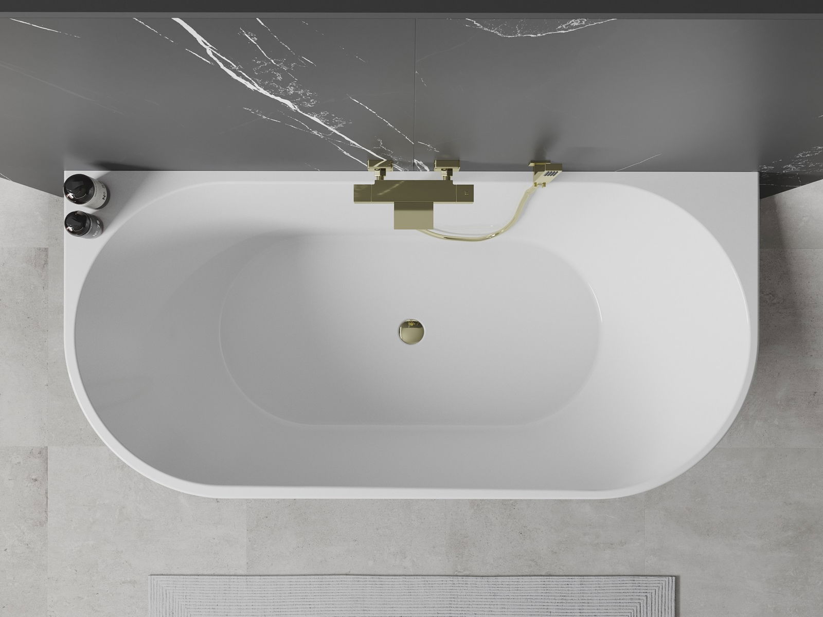 Mexen Oval freestanding wall bathtub 140 x 75 cm, white, gold overflow - 52671407500-50
