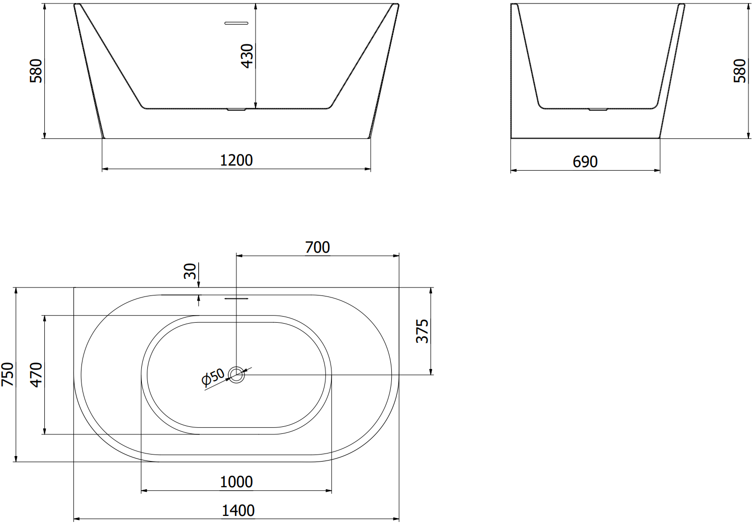 Discover a new level of relaxation with the oval bathtub featuring a modern design that perfectly combines white and black. The dimensions of 140 x 75 cm ensure comfortable use, and the height of 58 cm and depth of 45 cm allow for easy immersion. Made of sanitary acrylic, the bathtub is resistant to tarnishing and UV radiation, ensuring a long-lasting shine. The back-to-wall installation and overflow hole are additional advantages, and the set includes a siphon and click-clack plug.