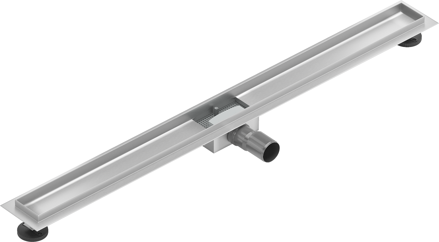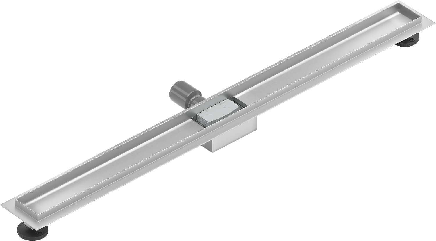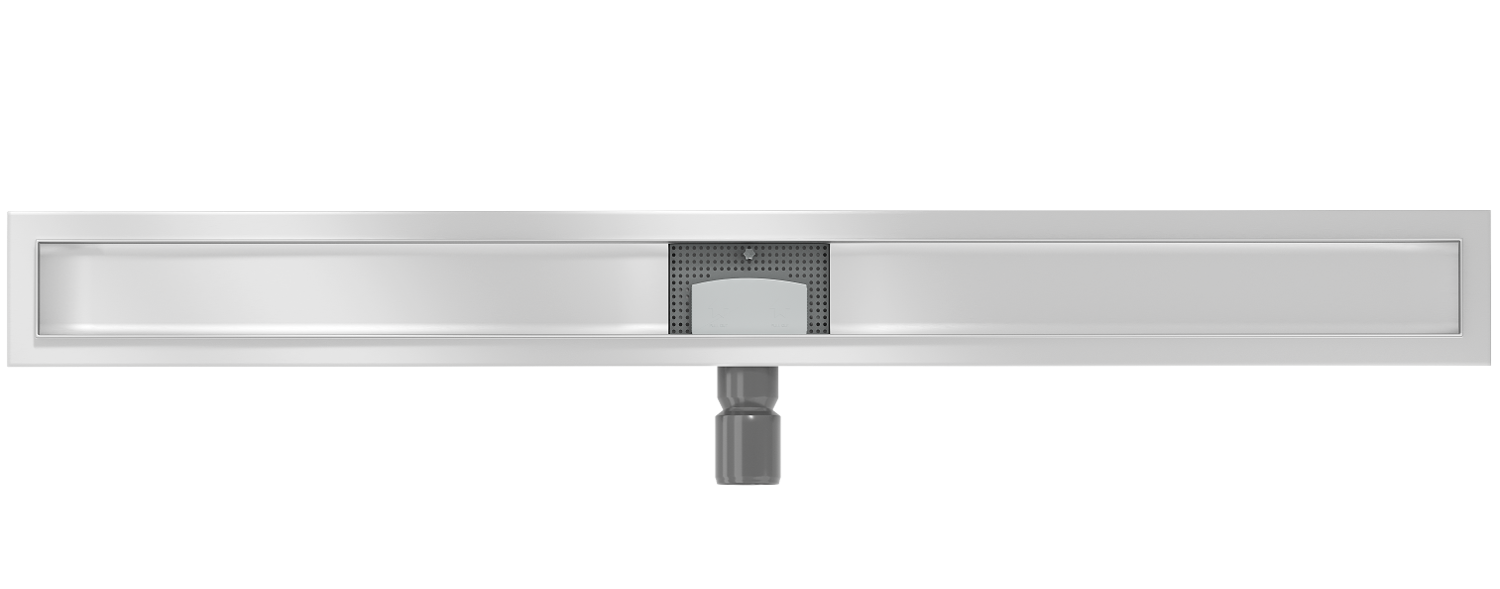 The linear drain is mounted at a depth of only 52 mm. The low depth allows for easier surface preparation for the drain installation and easy leveling, ensuring high aesthetics and effective water drainage.