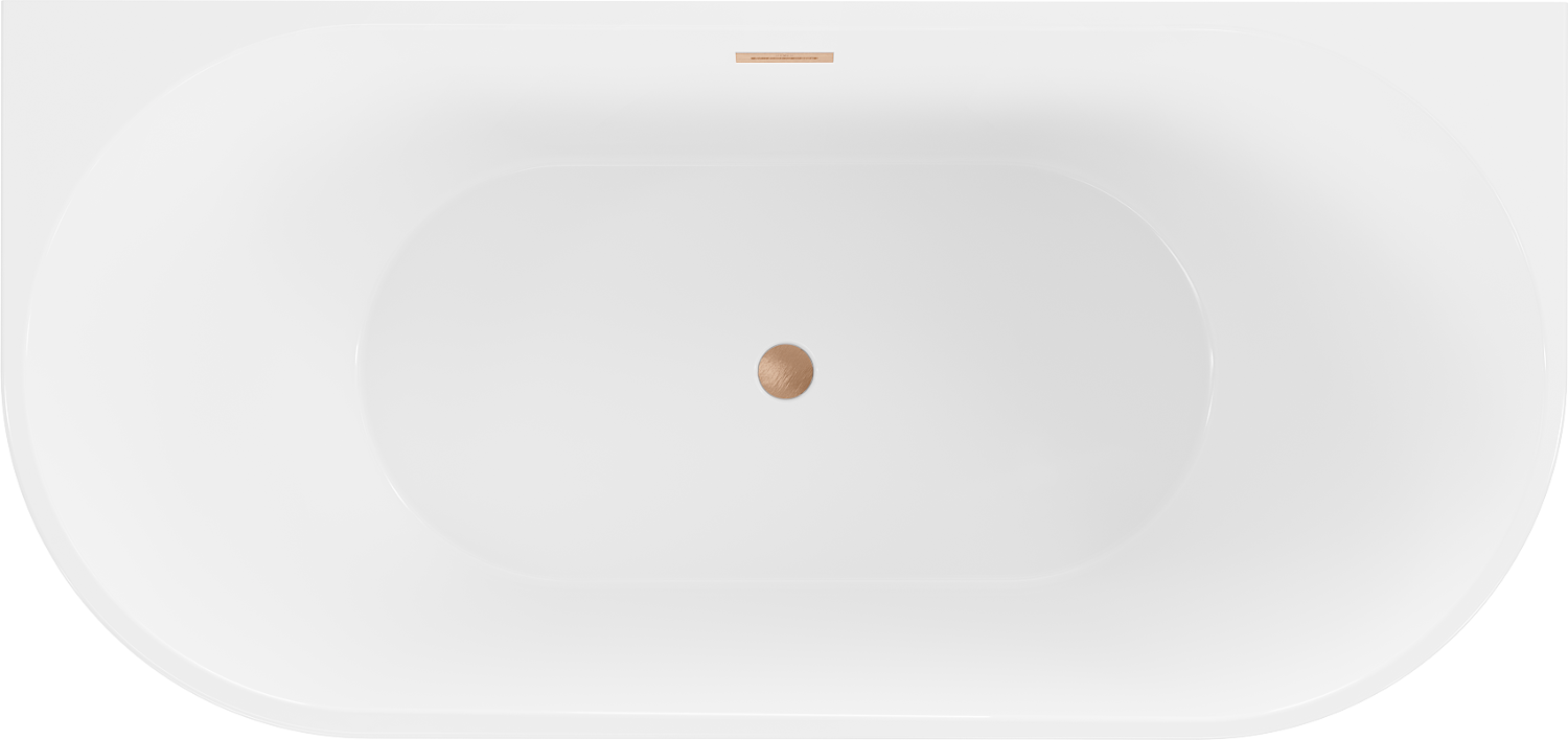 The Mexen Oval is an elegant freestanding wall-adjacent bathtub with dimensions of 150 x 75 cm, made of sanitary acrylic, ensuring high resistance to tarnishing and UV radiation. Its oval shape and white color scheme add a modern touch to the bathroom. The bathtub is equipped with an overflow and combined siphon made of brushed copper, enhancing its utility. Additionally, the wall-adjacent installation facilitates setup, and the high-gloss surface is sure to catch the eye of any guest.