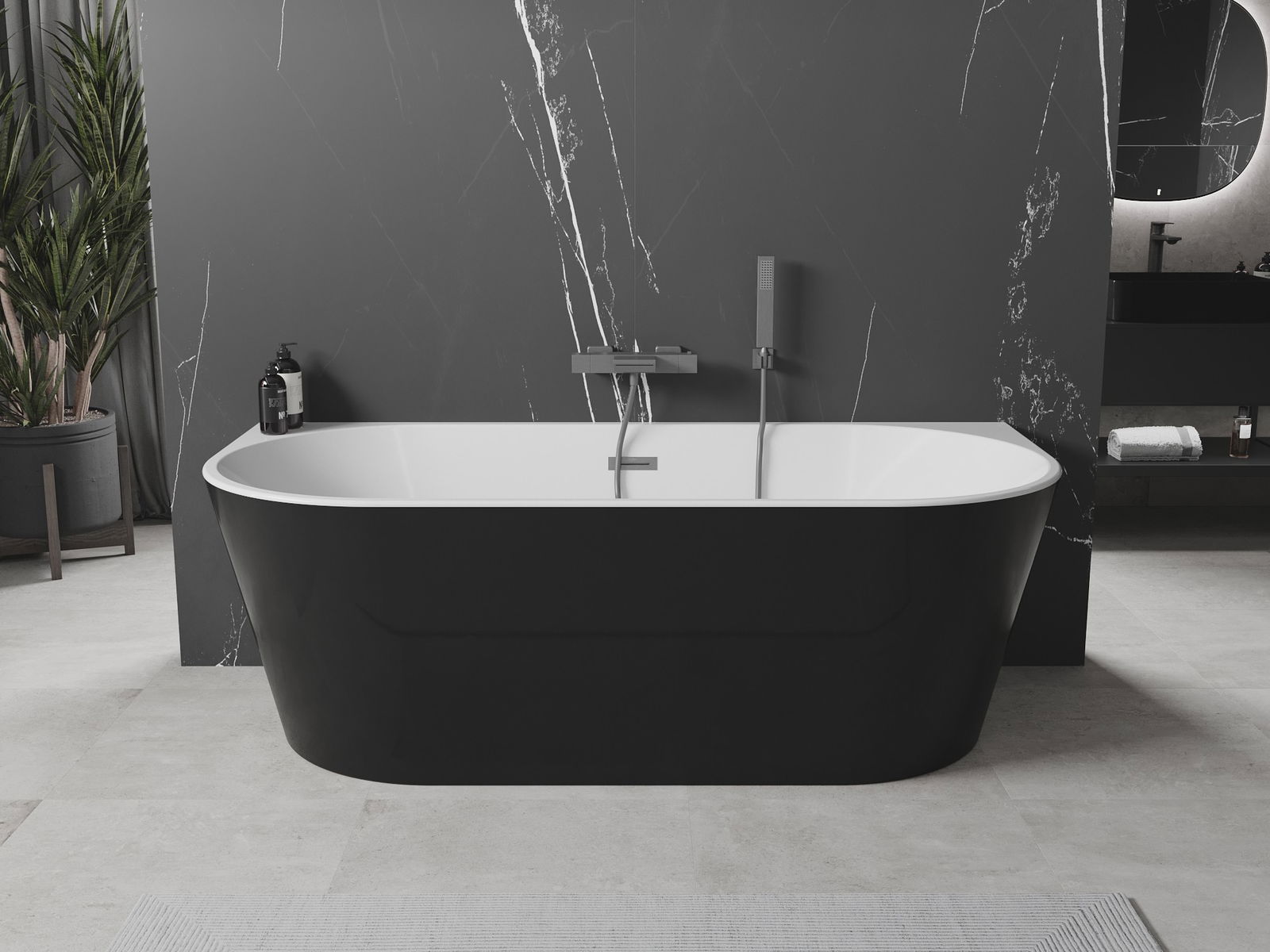 Discover the unique advantages of the Mexen Oval bathtub, measuring 150 x 75 cm, which fits perfectly into your interior. Made of sanitary acrylic, it combines elegant design in white-black with a matte gun gray finish. Equipped with an overflow opening, high resistance to tarnishing, and UV radiation, it ensures long-lasting use. Wall-adjacent installation is easy thanks to the included siphon and click-clack plug. Enhance your bathroom experience with Mexen Oval.