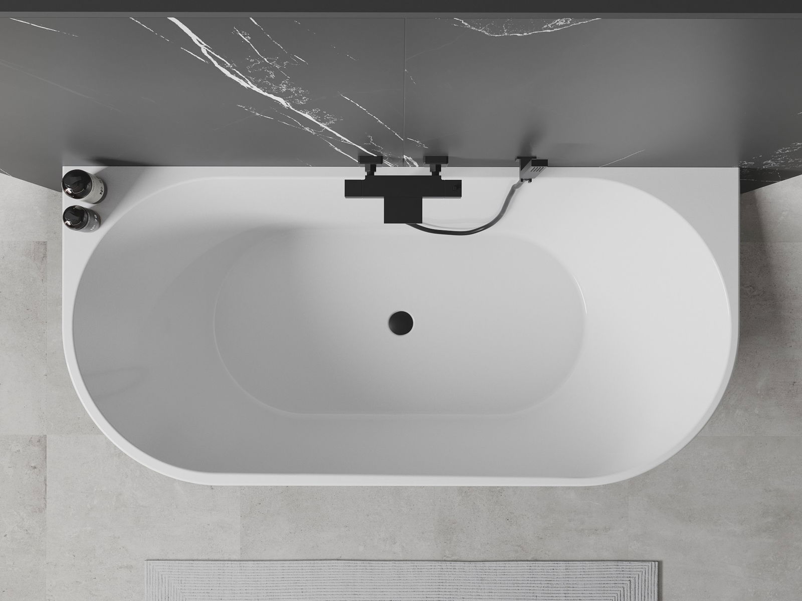 Mexen Oval freestanding wall-mounted bathtub 170 x 80 cm, white, black overflow - 52671708000-70
