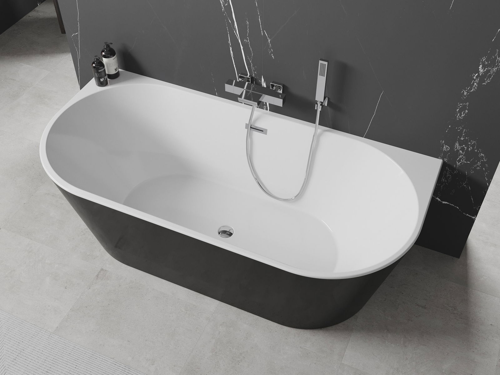 Mexen Oval freestanding wall-adjacent bathtub 170 x 80 cm, white/black, chrome overflow - 52671708075-01