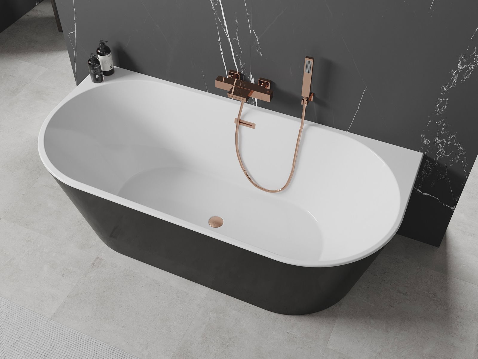 Discover luxury with the Mexen Oval bathtub measuring 180 x 80 cm, combining elegance in white and black with a modern brushed copper finish. Its oval shape, comfortable height of 58 cm, and depth of 45 cm ensure a comfortable bath. Made from sanitary acrylic, the bathtub is resistant to dulling and UV radiation, guaranteeing long-lasting beauty. The back-to-wall design facilitates installation, and the set includes a siphon and click-clack plug.