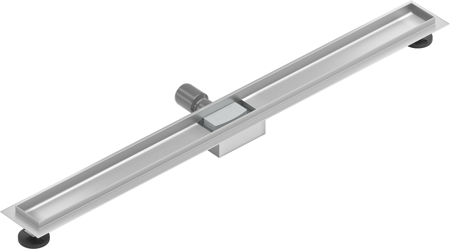 The linear drain is mounted at a depth of only 52 mm. The low depth allows for easier surface preparation for the drain installation and easy leveling, ensuring high aesthetics and effective water drainage.