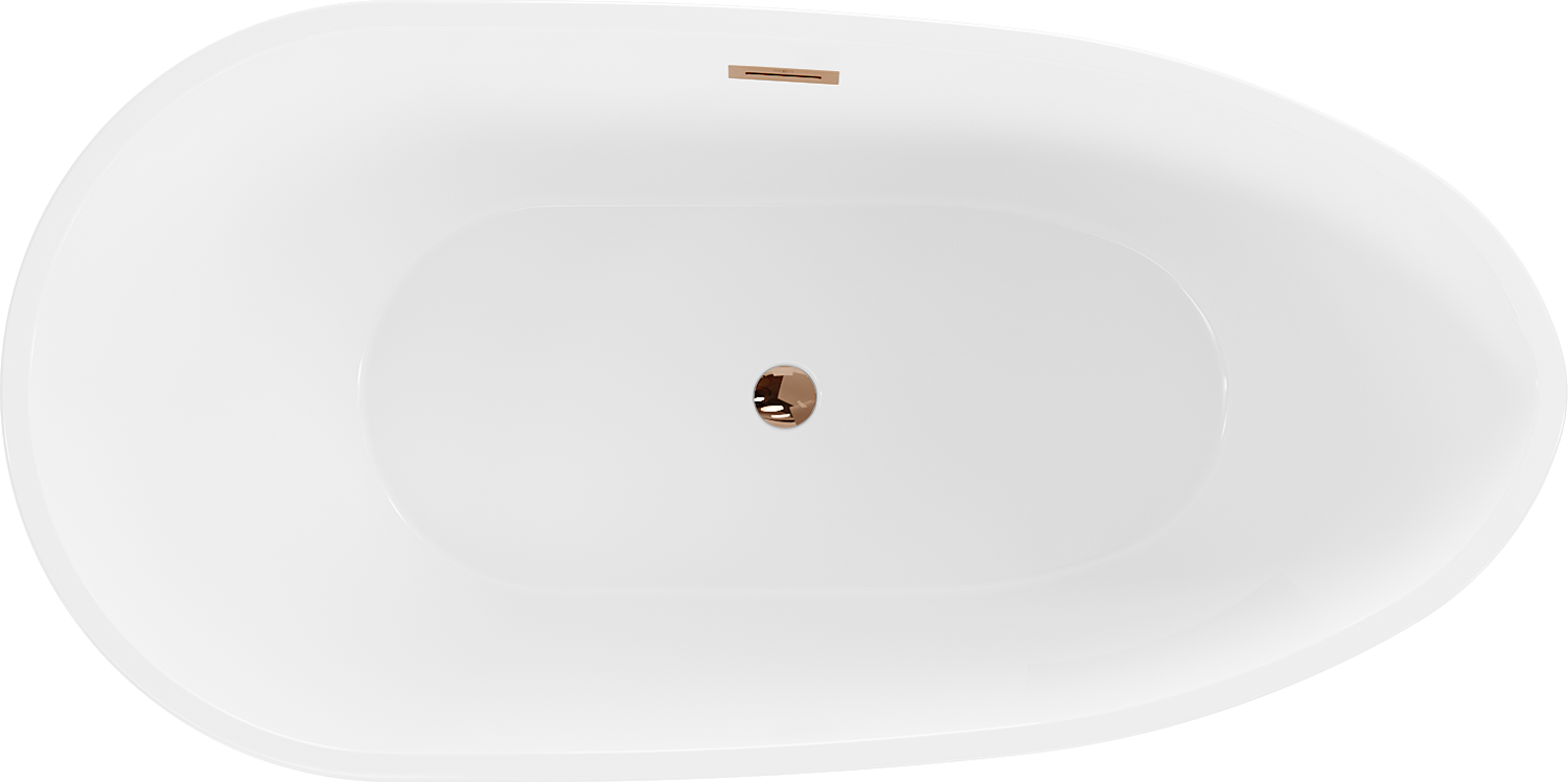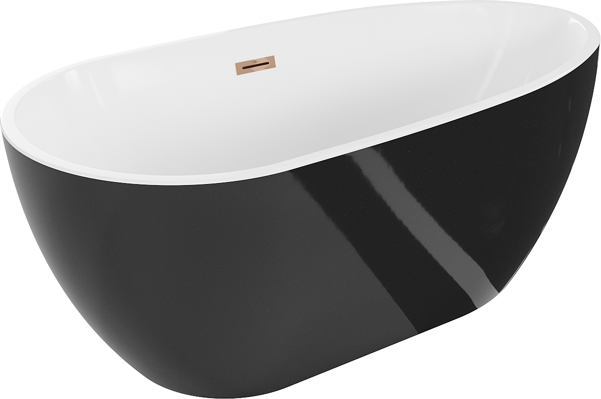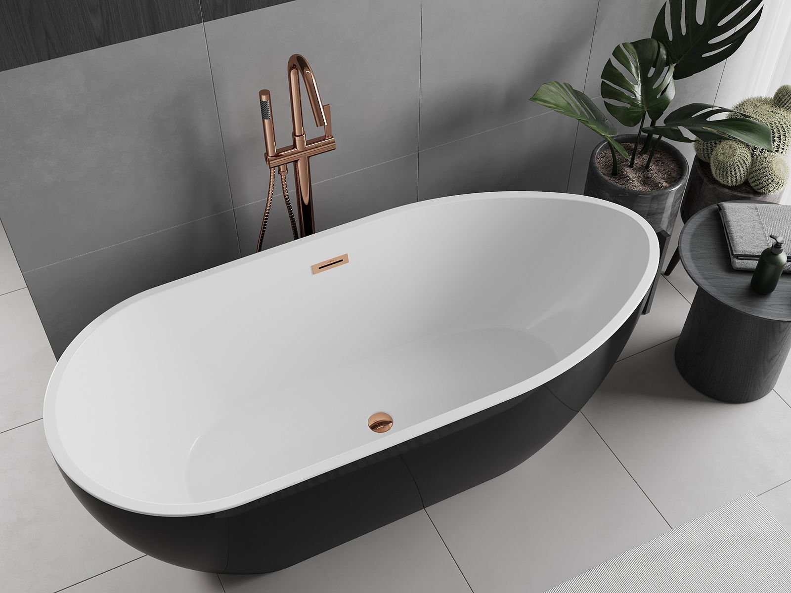 The Mexen Eos is a freestanding bath measuring 170 x 75 cm, ideal for modern bathrooms. Made from sanitary acrylic, it ensures durability and easy maintenance. Its oval shape and elegant black and white colour suit any decor. The stylish rose gold finish adds a luxurious touch. The bath is equipped with an overflow and a central drain for increased convenience. Additionally, it comes with a siphon and click-clack plug.