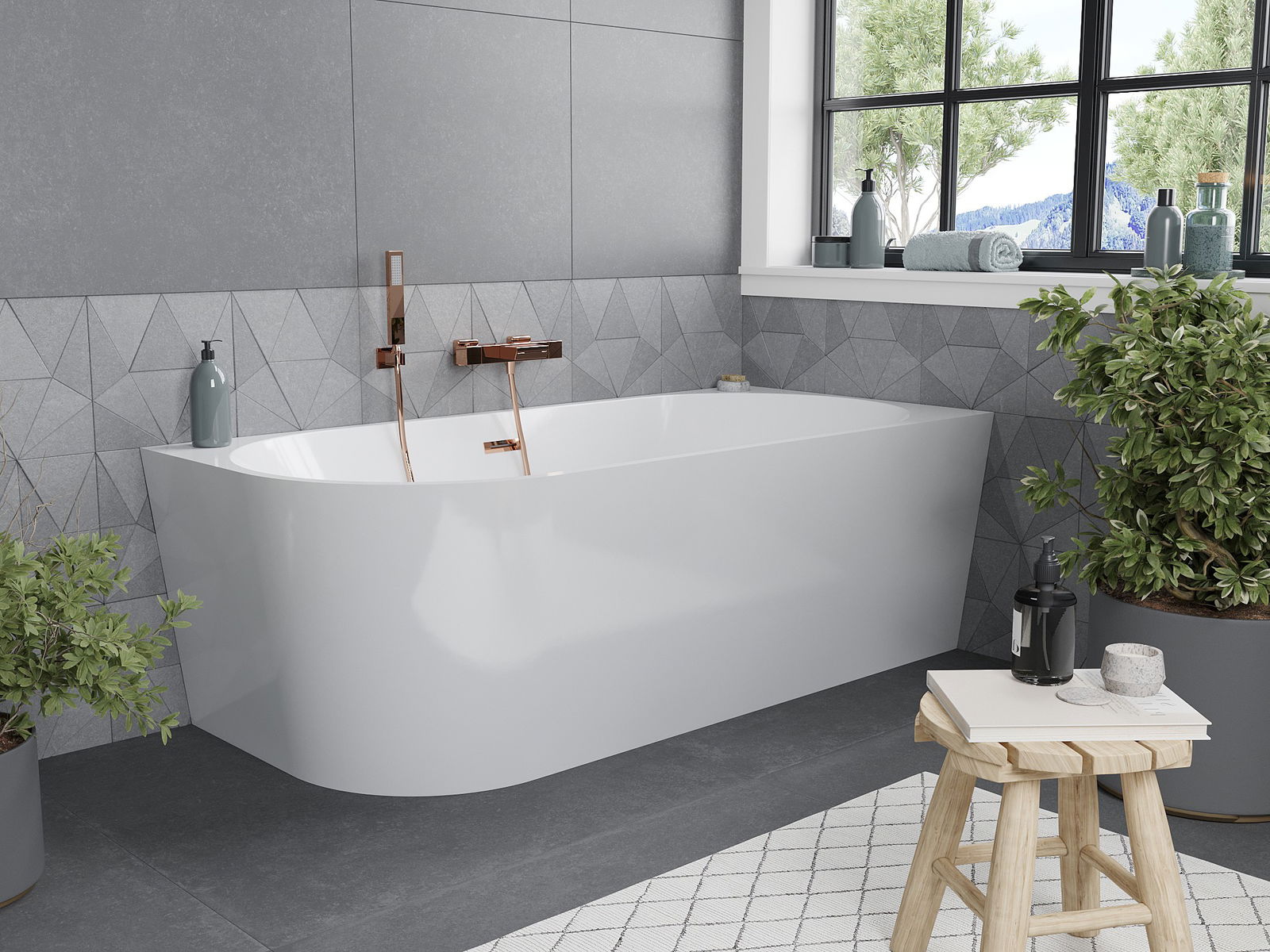 The freestanding corner bathtub is an ideal solution for a modern bathroom. It offers comfort with dimensions of 150 x 75 cm and a height of 58 cm. Made of sanitary acrylic, it provides durability and ease of cleaning. The white color and gloss give an elegant look, while the rose gold finish adds luxury. In addition to the standard overflow opening, the bathtub also has a medium drain. The set includes a siphon and a click-clack plug, which simplifies installation.