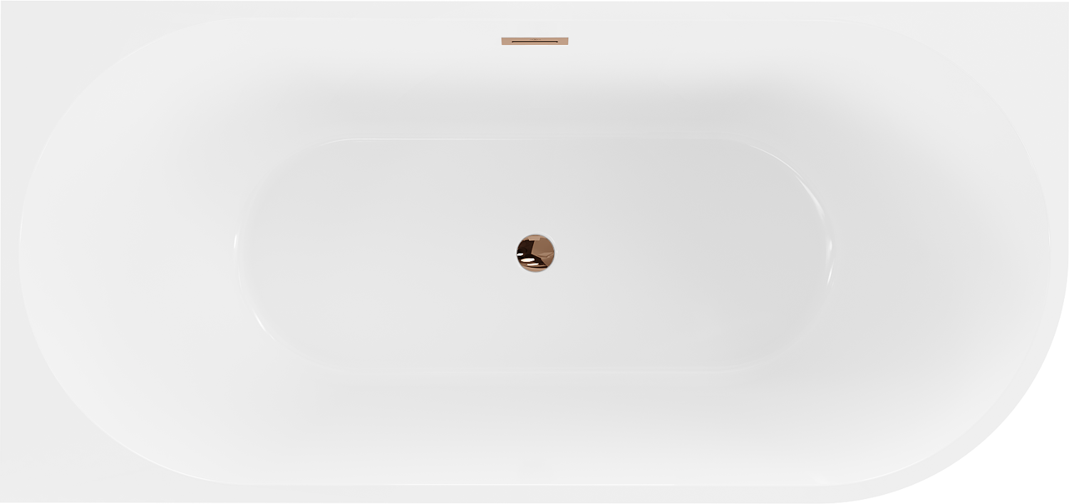 Mexen Mia is an elegant freestanding corner bathtub measuring 160 x 75 cm, available in a stylish combination of white and black. Made from sanitary acrylic, it features resistance to dulling and UV radiation. The rose gold finish adds a touch of exceptional elegance. The bathtub has an overflow hole and a faucet hole, and the set includes a siphon and click-clack drain. It is ideal for modern bathrooms, combining comfort with aesthetics.