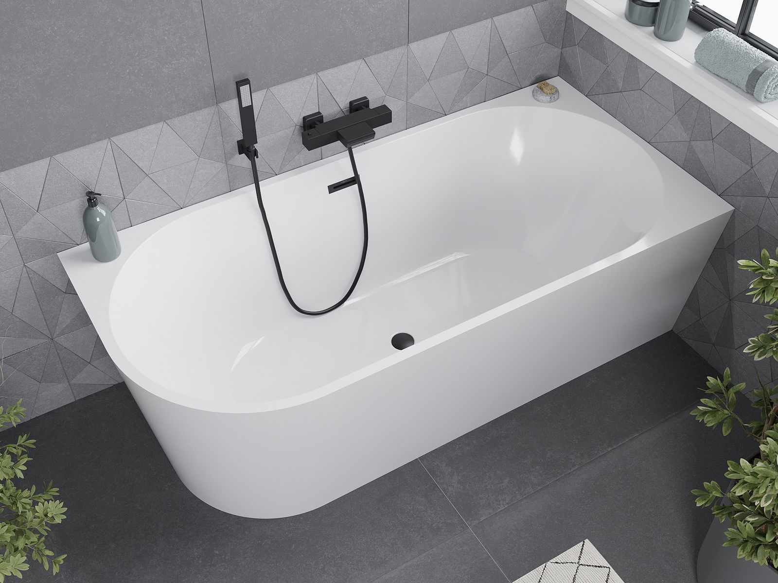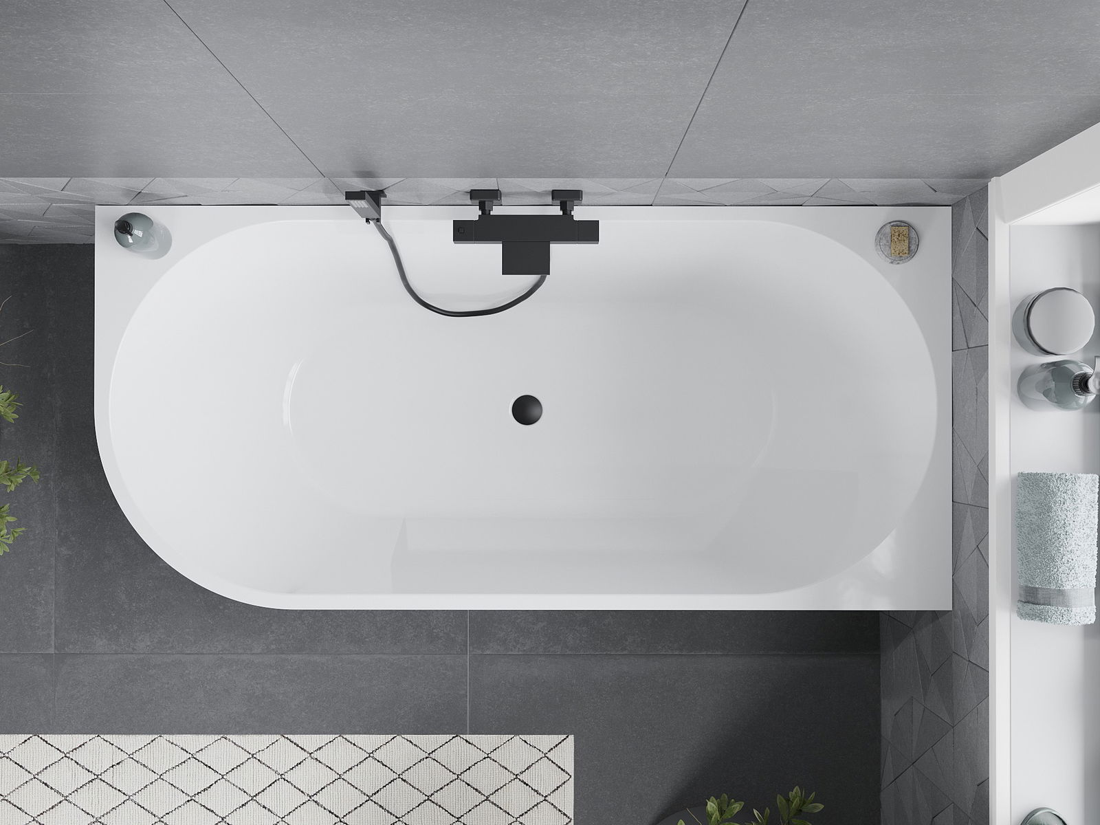 Mexen Mia freestanding corner bathtub right 160 x 75 cm, white, black overflow - 52691607500P-70