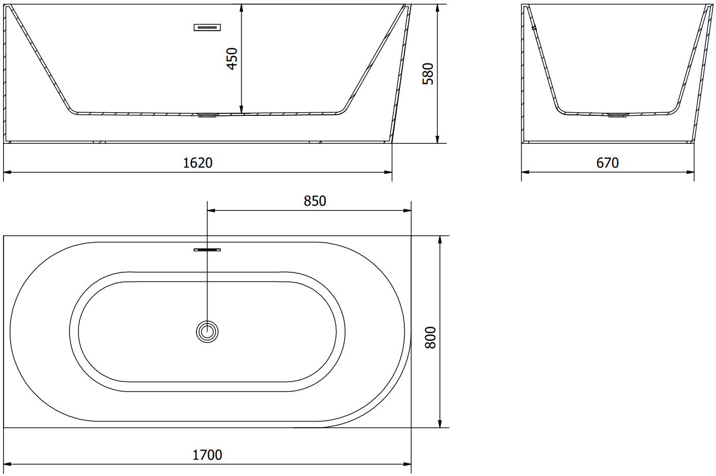 The overflow opening is referred to as the "safety opening". It allows excess water to escape, protecting the bathroom from flooding. This is a safe and practical solution that lets you enjoy a bath without worrying about the water level rising.