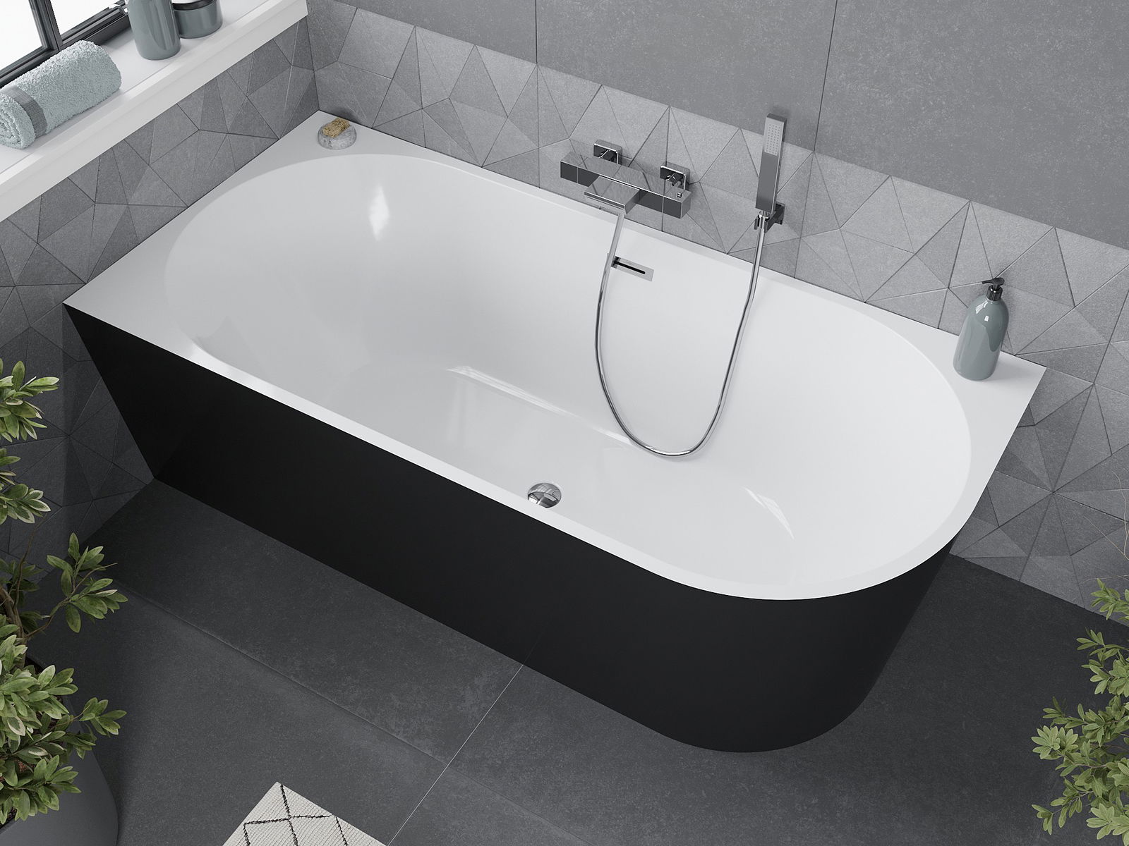 The freestanding corner bathtub left 170 x 80 cm in white and black color is a perfect combination of elegance and functionality. Made of sanitary acrylic, it is resistant to tarnishing and UV radiation. Thanks to high-quality chrome finish and rectangular shape, it perfectly fits into modern interiors. It offers additional features, such as an overflow hole and central drain. It's an ideal choice for those who value comfort and style.