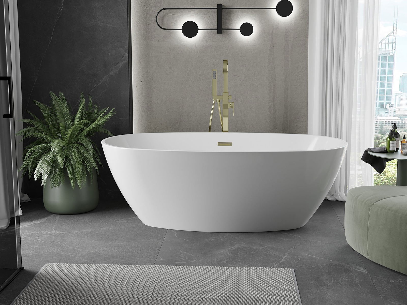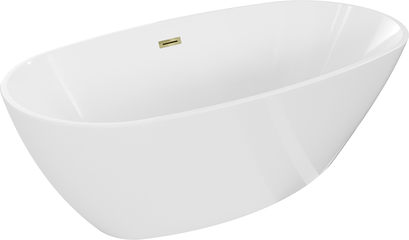 Mexen Eris is a freestanding bathtub measuring 155 x 80 cm, perfect for any bathroom. Made of sanitary acrylic in an elegant white color, it ensures durability and resistance to tarnishing and UV radiation. Additionally, the gold finish gives it an exclusive character. The bathtub is equipped with an overflow hole and an easy-to-install siphon with a click-clack plug. Discover comfort and style with Mexen Eris, which combines modern design with functionality.