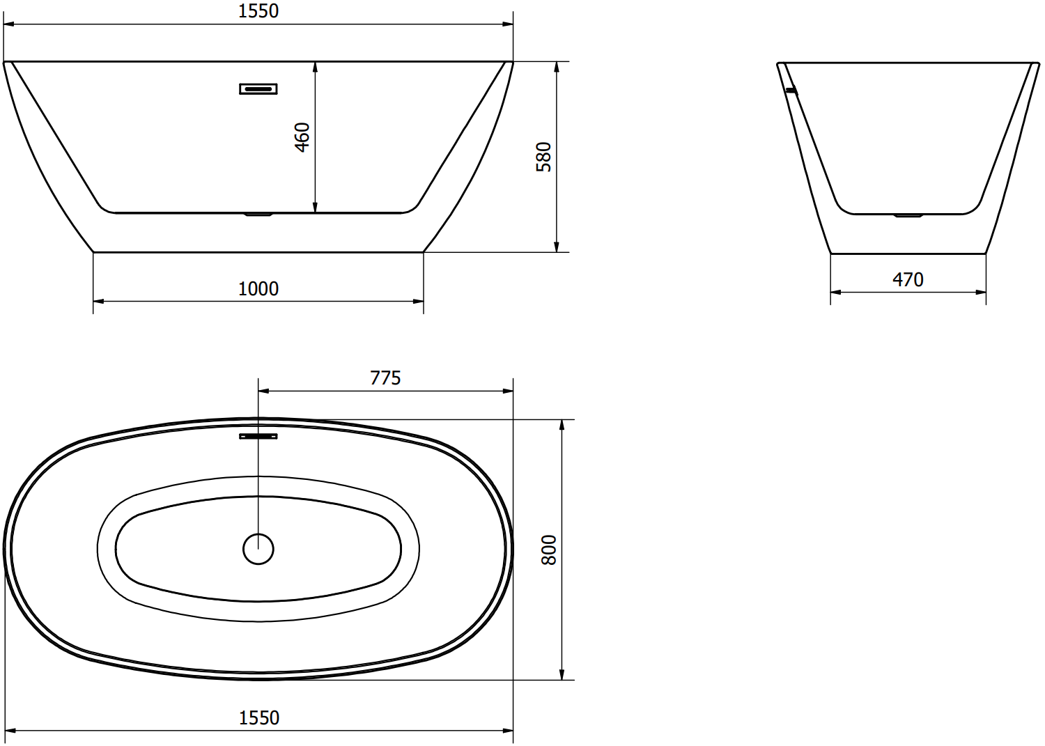 Mexen Eris freestanding bath 155 x 80 cm, white, gun metal overflow - 53441558000-95