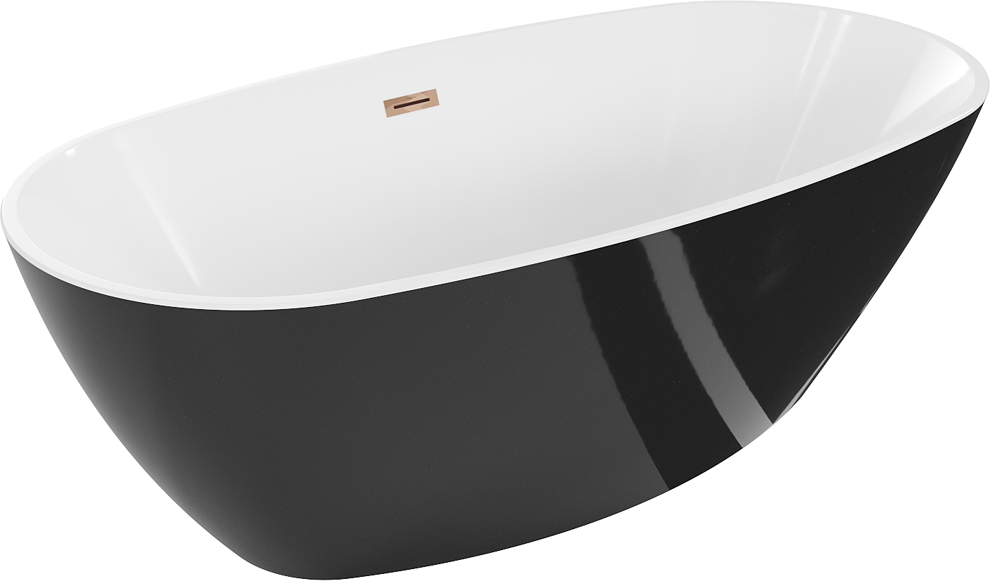 Mexen Eris is an elegant freestanding bathtub measuring 170 x 80 cm, perfect for any modern interior. Made from sanitary acrylic, it offers resistance to dulling and UV radiation, ensuring a long-lasting and attractive appearance. Its oval shape and glossy surface in white and black, with rose gold finish, make it a true design element in the bathroom. The bathtub is easy to install and equipped with an overflow hole and siphon, making it a functional choice.