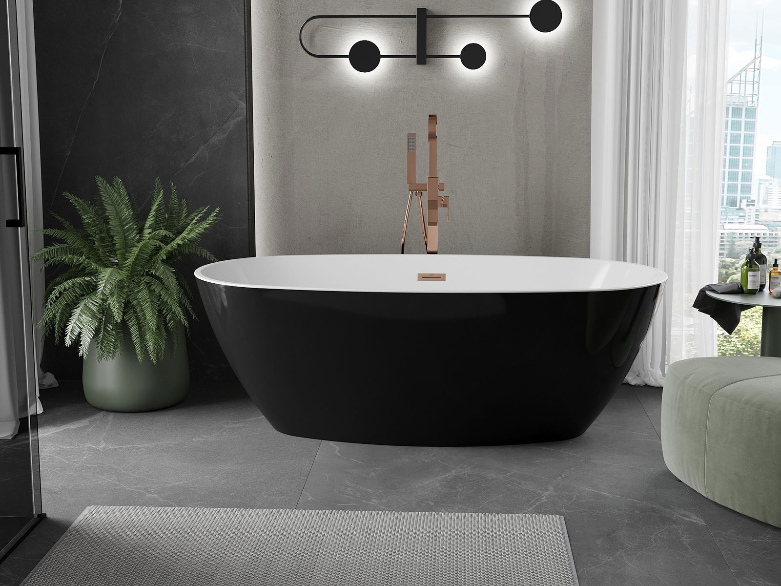 The Mexen Eris freestanding bathtub 180 x 80 cm combines elegance with functionality. Its oval shape and white/black color make it a perfect fit for modern interiors. Made of sanitary acrylic, it ensures resistance to matting and UV radiation. It offers a convenient overflow hole and includes a siphon, along with a freestanding installation. The brushed copper finish adds a unique character, making it not only an aesthetic but also a practical solution for any bathroom.