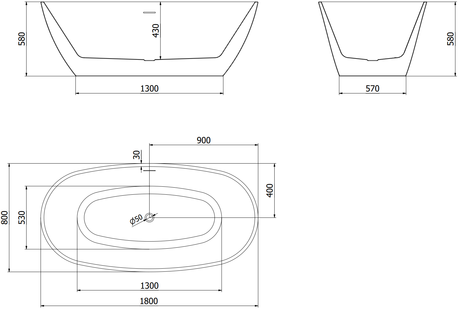The freestanding bathtub 180 x 80 cm in white-black color is an excellent combination of style and functionality. Made from sanitary acrylic, it offers resistance to tarnishing and UV radiation, ensuring long-lasting effect. With its oval shape and glossy surface, it fits perfectly into modern interiors. The overflow hole and easy installation complete its advantages, and the elegant gun metal finish give it a unique character.