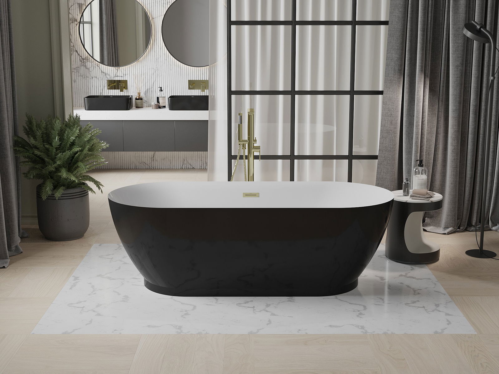 Mexen Roxy free-standing bathtub 180 x 85 cm, white/black, brushed gold overflow - 51201808575-55