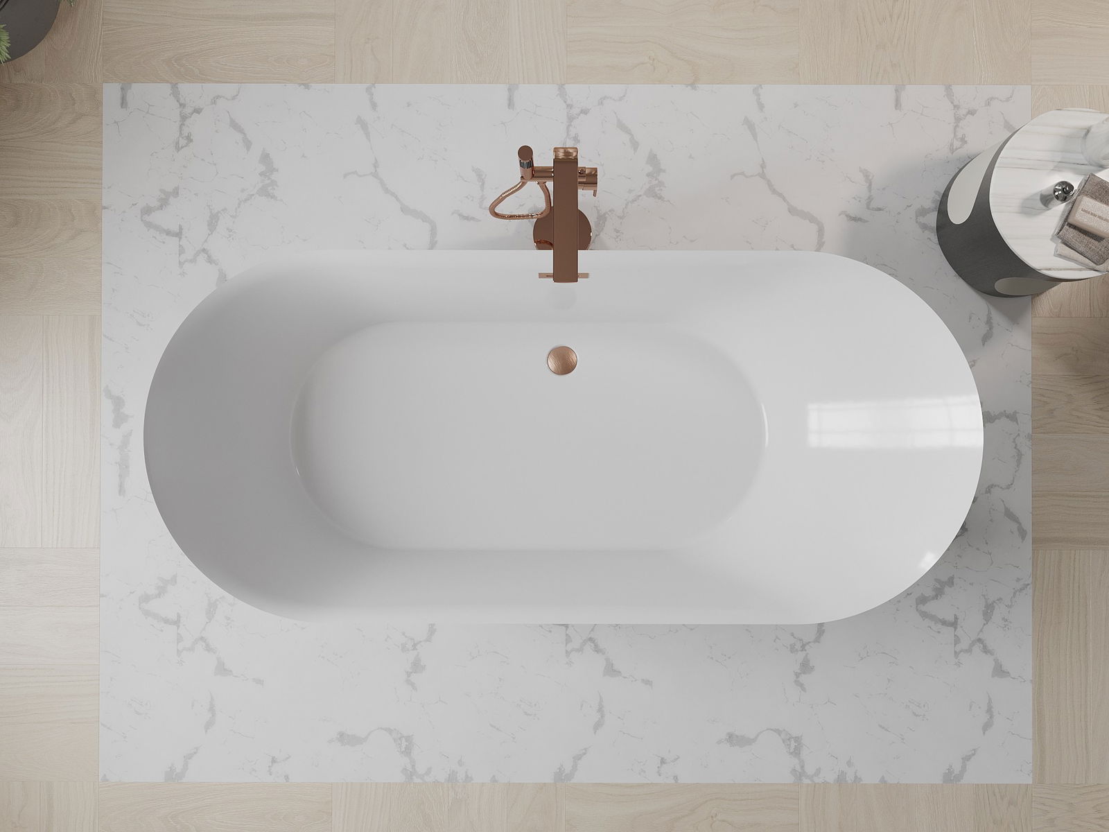 Mexen Roxy freestanding bath 180 x 85 cm, white/black, brushed copper overflow - 51201808575-65