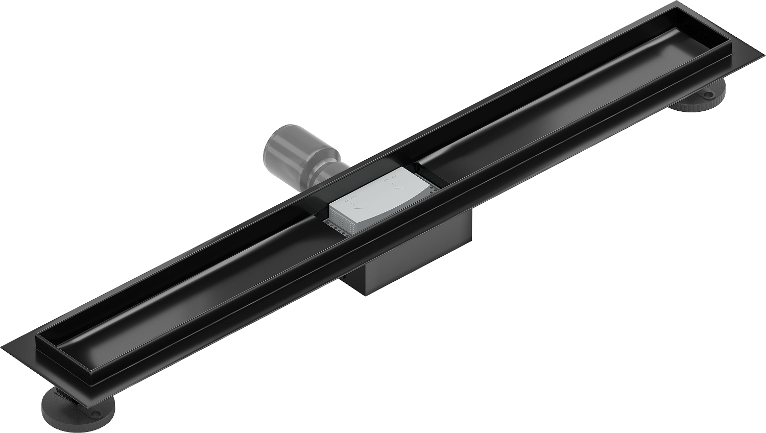 The linear drain is mounted at a depth of only 52 mm. The low depth allows for easier surface preparation for the drain installation and easy leveling, ensuring high aesthetics and effective water drainage.