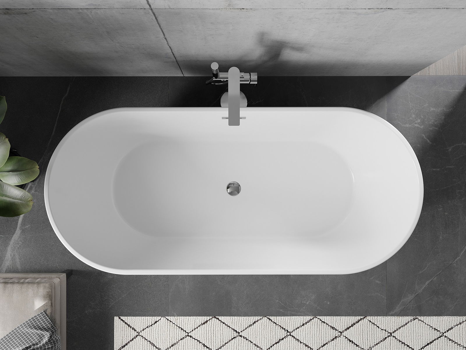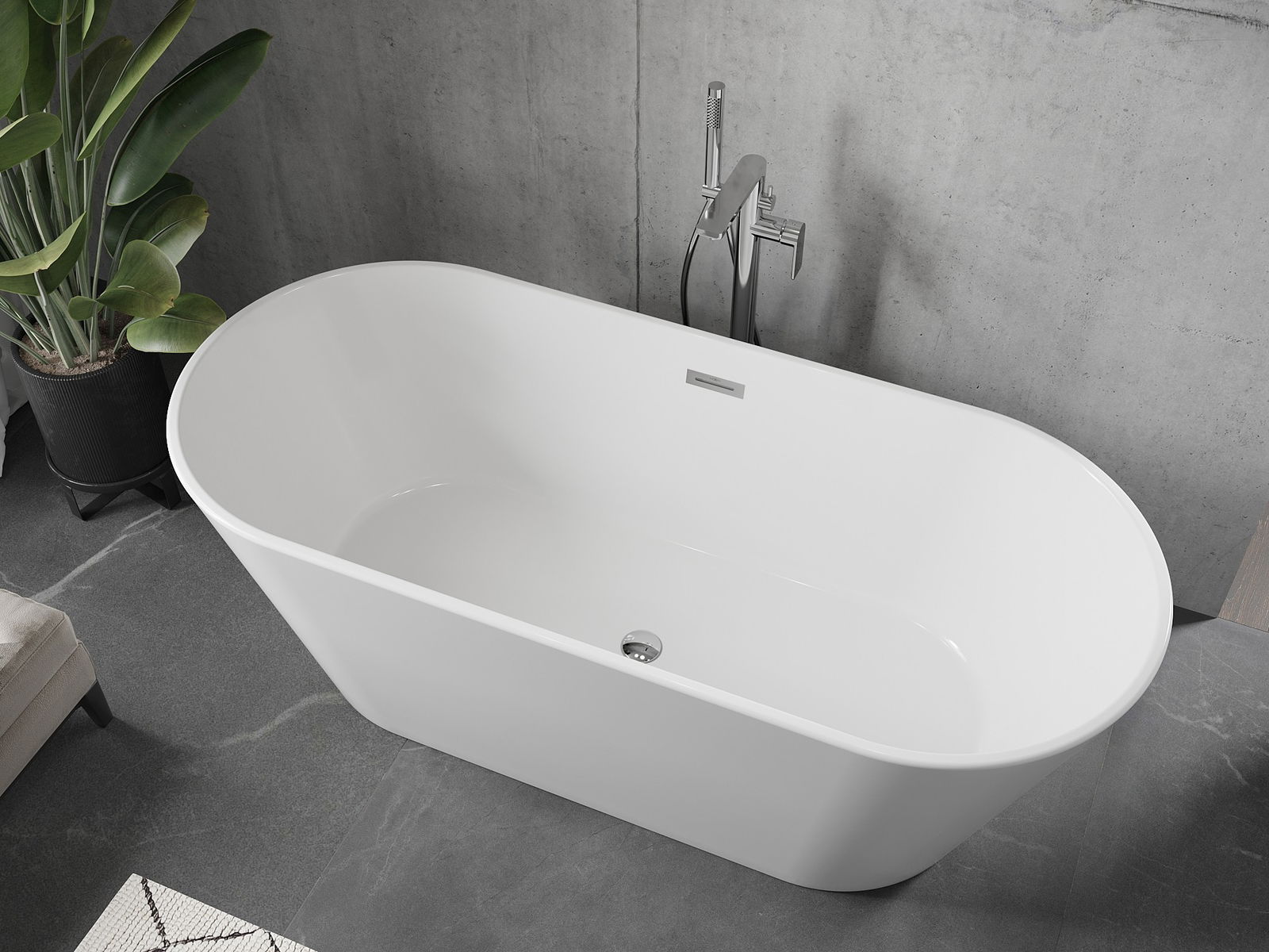 Mexen Flavia is an elegant freestanding bathtub with dimensions of 160 x 75 cm, made of sanitary acrylic, combining modern design with functionality. Its depth of 46 cm and height of 58 cm provide comfortable use. The white bathtub with a chrome overflow is distinguished by its resistance to dulling and UV radiation. The set includes a siphon and a click-clack plug, facilitating installation and daily use.