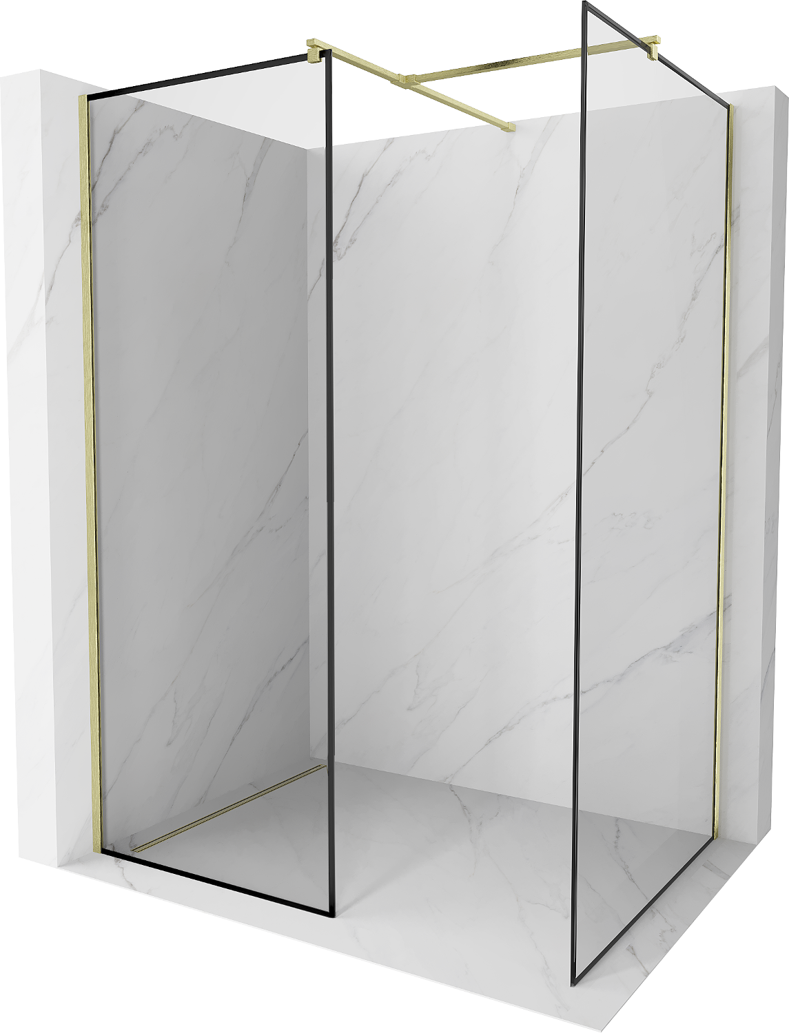 Mexen Kioto Walk-in Shower Wall 160 x 100 cm, Black Frame, Brushed Gold - 800-160-202-55-70-100