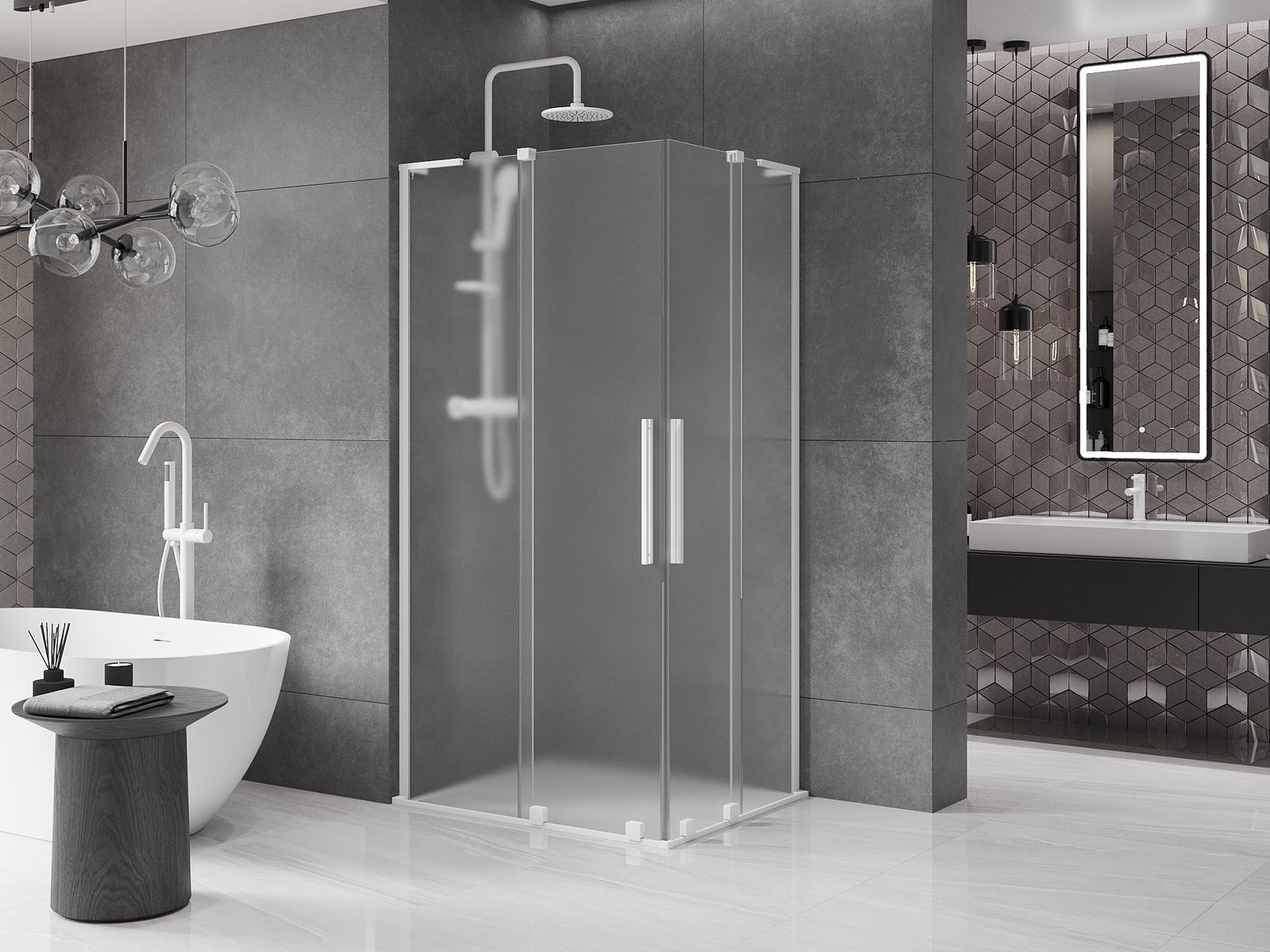 Mexen Velar L Duo sliding shower enclosure 100 x 90 cm, frost, white - 871-100-090-02-33-20