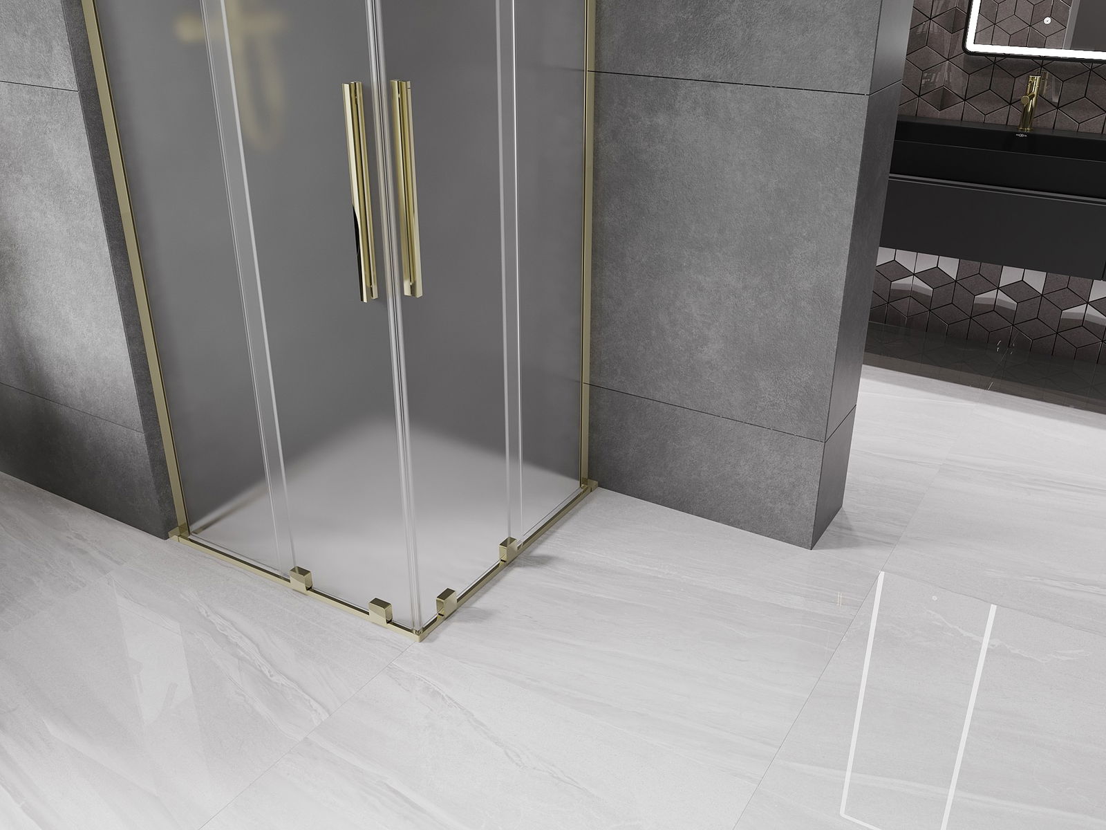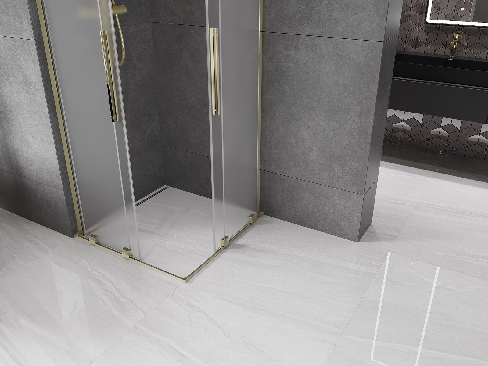 Mexen Velar L Duo sliding shower cabin 90 x 90 cm, frosted, gold - 871-090-090-02-33-50