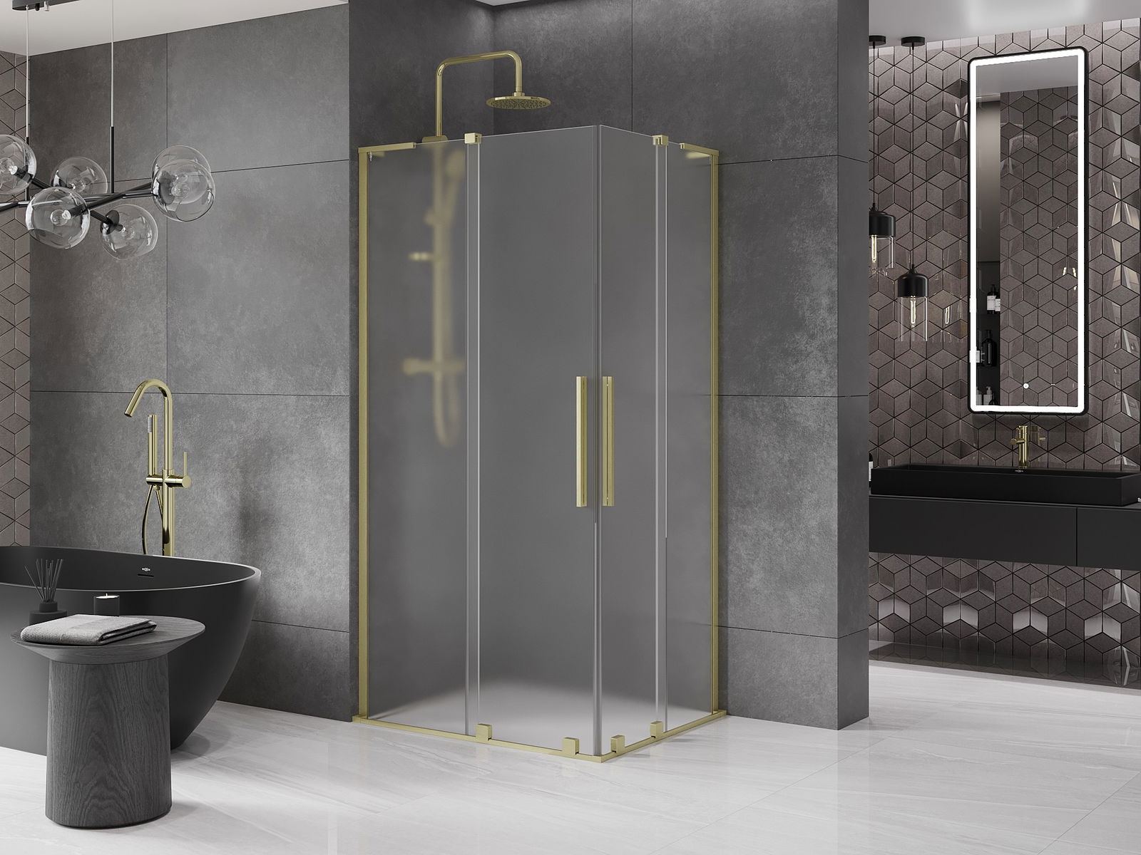 Mexen Velar L Duo sliding shower cabin 90 x 80 cm, frosted, brushed gold - 871-090-080-02-33-55