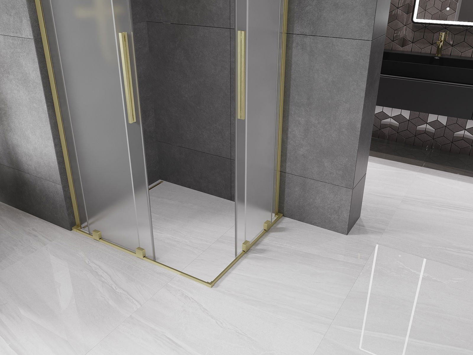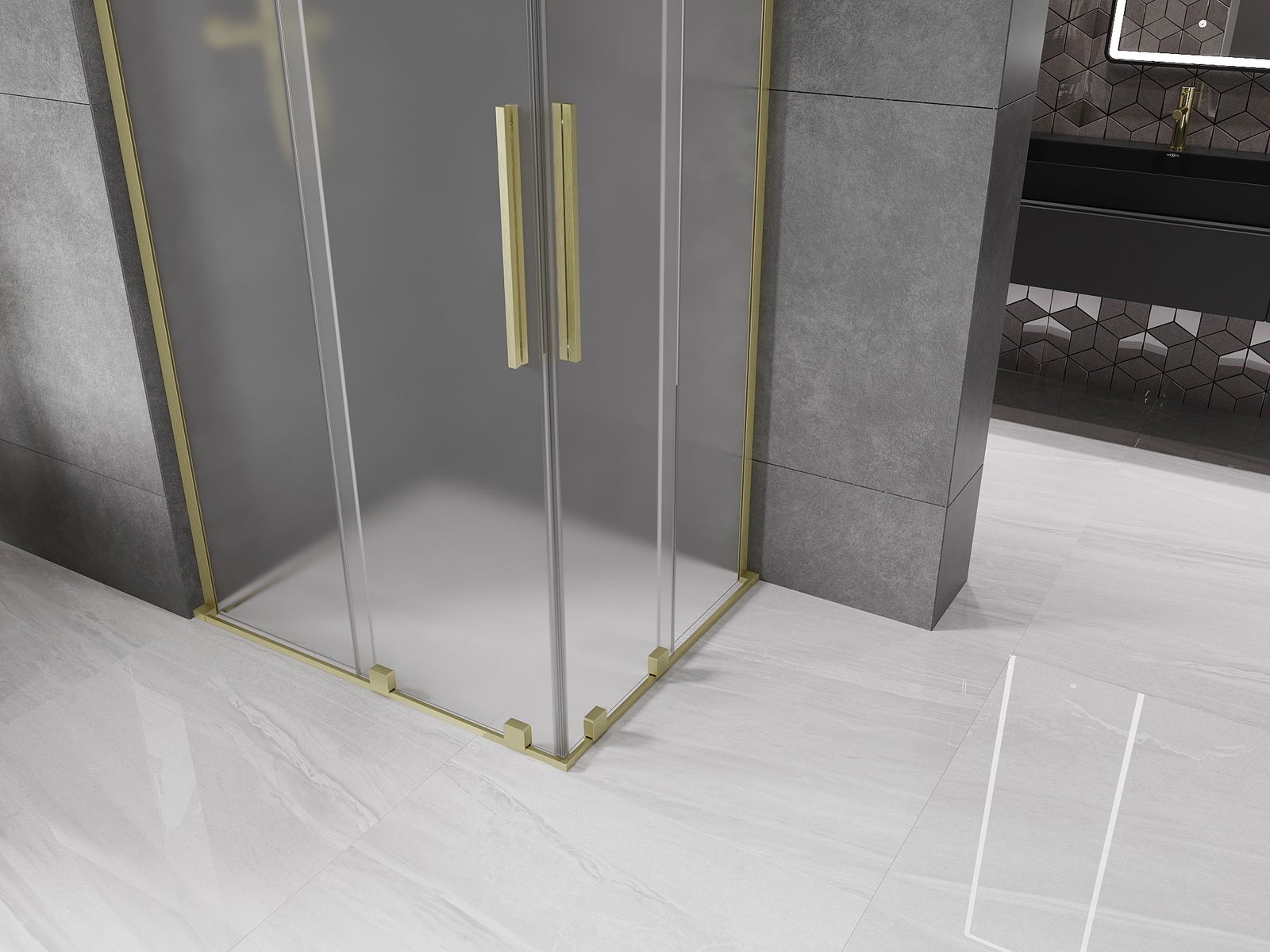 Mexen Velar L Duo Sliding Shower Cabin 100 x 90 cm, Frosted, Brushed Gold - 871-100-090-02-33-55