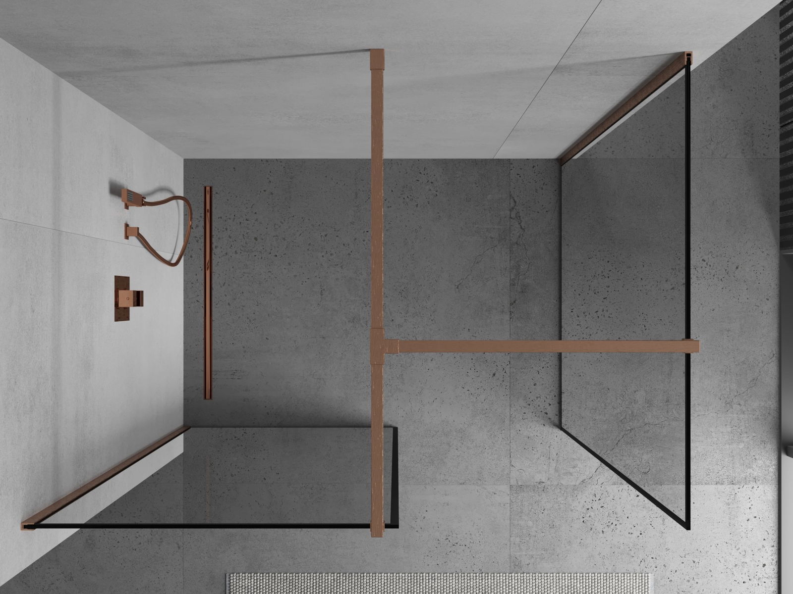 Mexen Kioto Walk-in Shower Wall 100 x 70 cm, Black Frame, Brushed Copper - 800-100-202-65-70-070