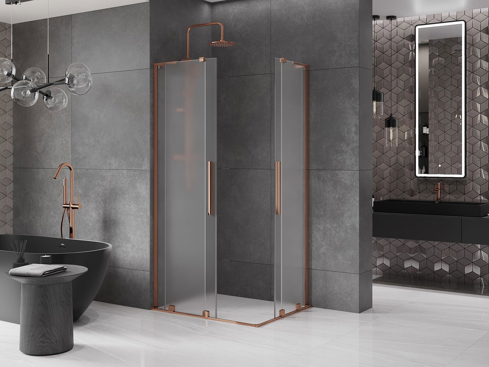 Mexen Velar L Duo sliding shower cabin 100 x 90 cm, frost, pink gold - 871-100-090-02-33-60