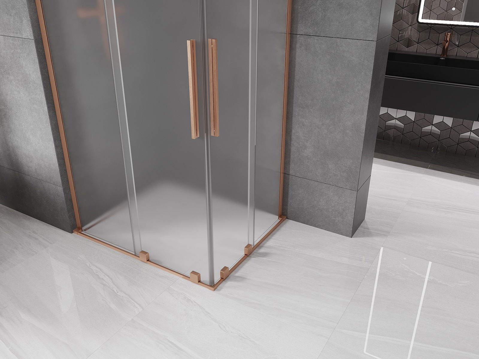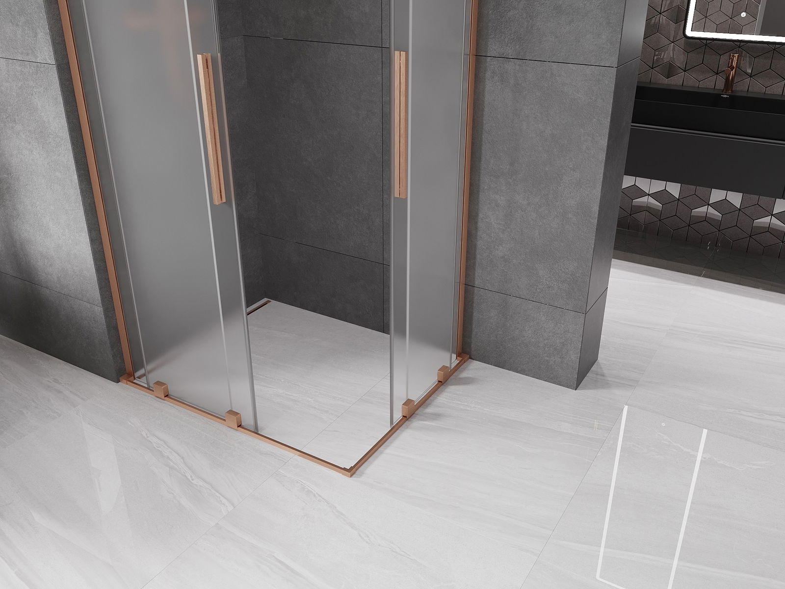 Mexen Velar L Duo Sliding Shower Enclosure 100 x 90 cm, Frosted, Brushed Copper - 871-100-090-02-33-65