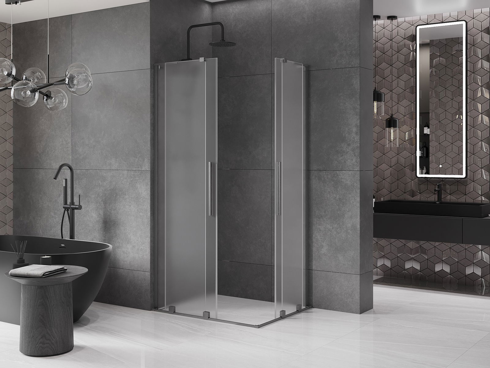 Mexen Velar L Duo sliding shower cabin 100 x 90 cm, frost, brushed gun gray - 871-100-090-02-33-66