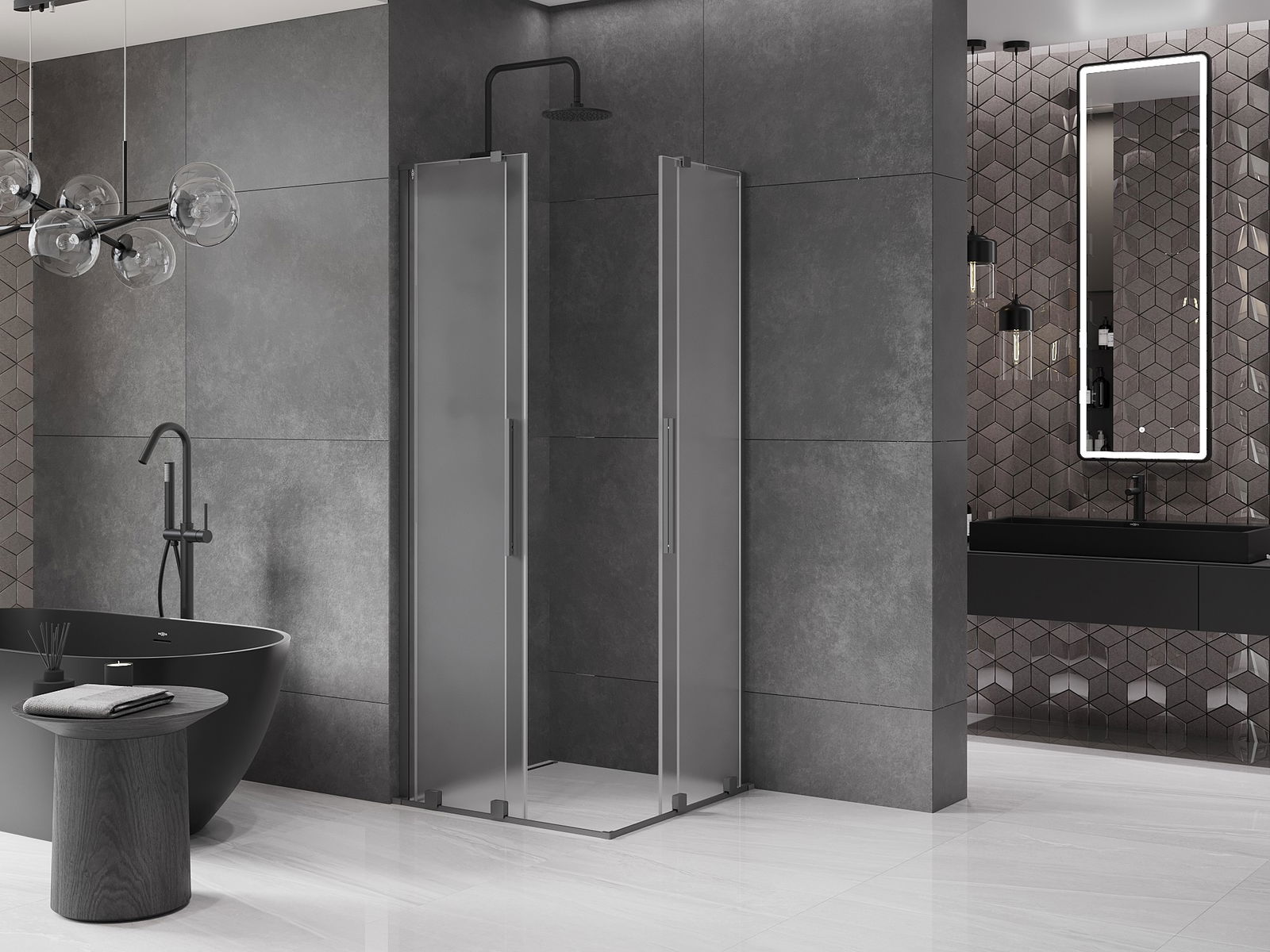 Mexen Velar L Duo sliding shower cabin 100 x 100 cm, frost, gun metal - 871-100-100-02-33-95