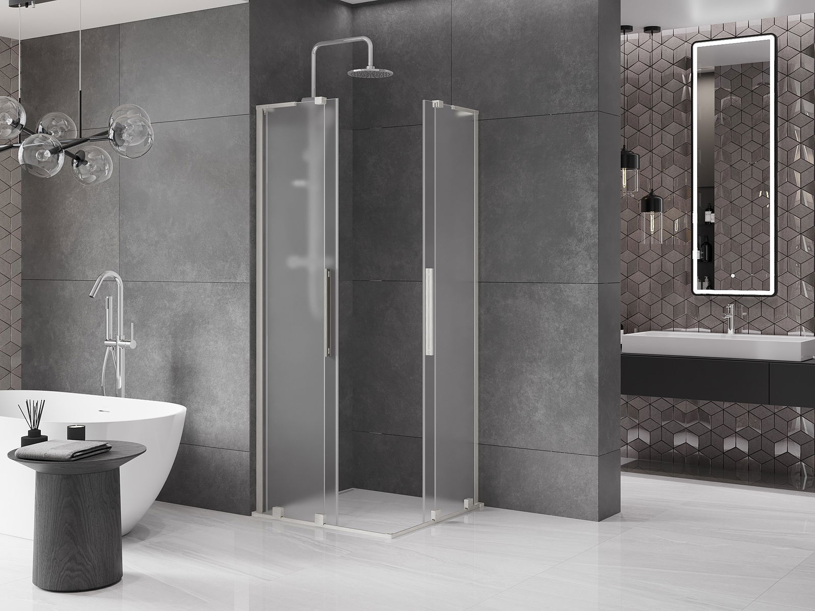 A handy and convenient handle made of stainless steel. The stylish shape combined with a finish that matches the color of the profiles gives a modern and stylish look, highlighting the aesthetics of any bathroom.