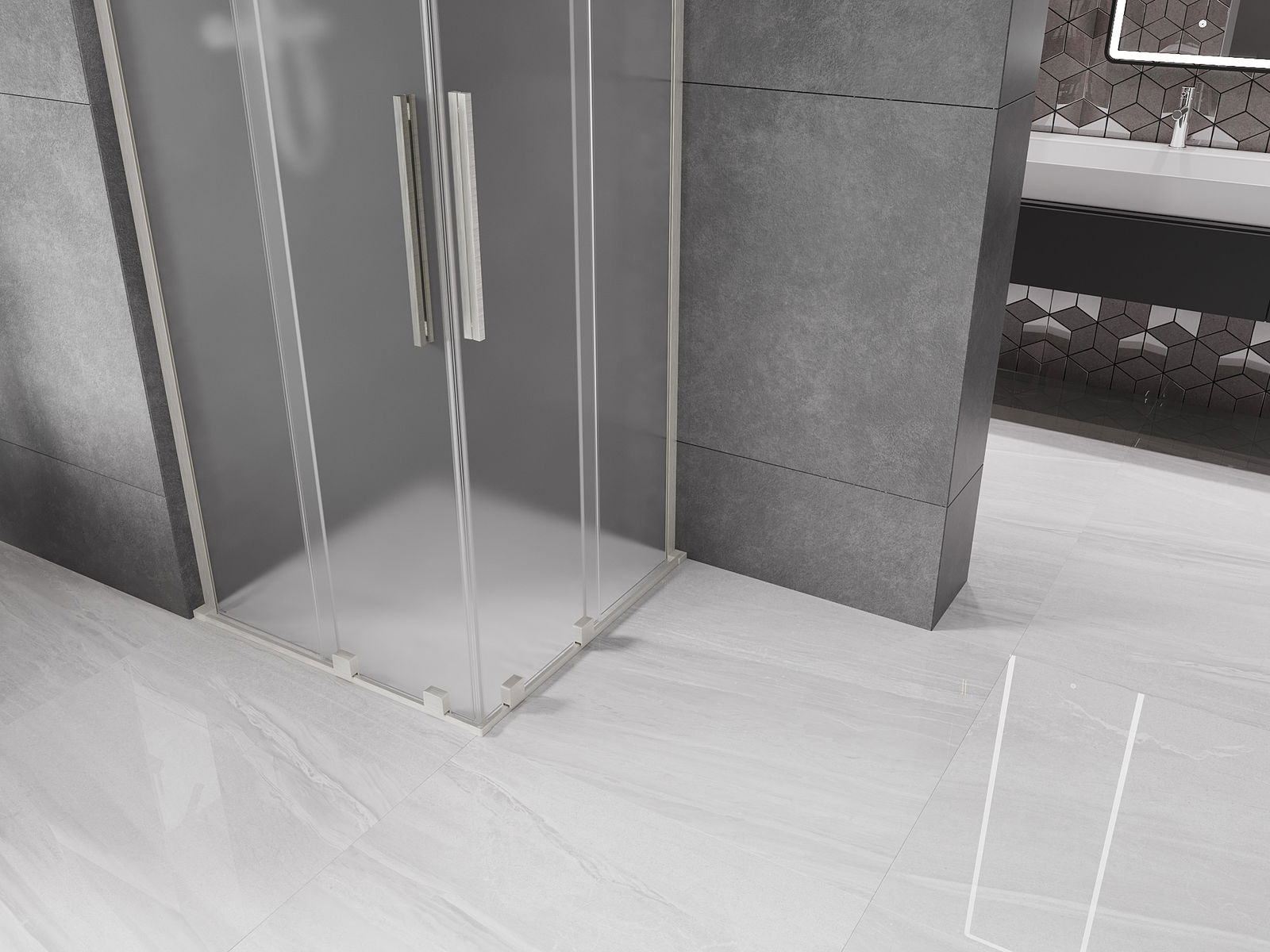 Mexen Velar L Duo Sliding Shower Enclosure 80 x 80 cm, Frosted, Brushed Nickel - 871-080-080-02-33-97
