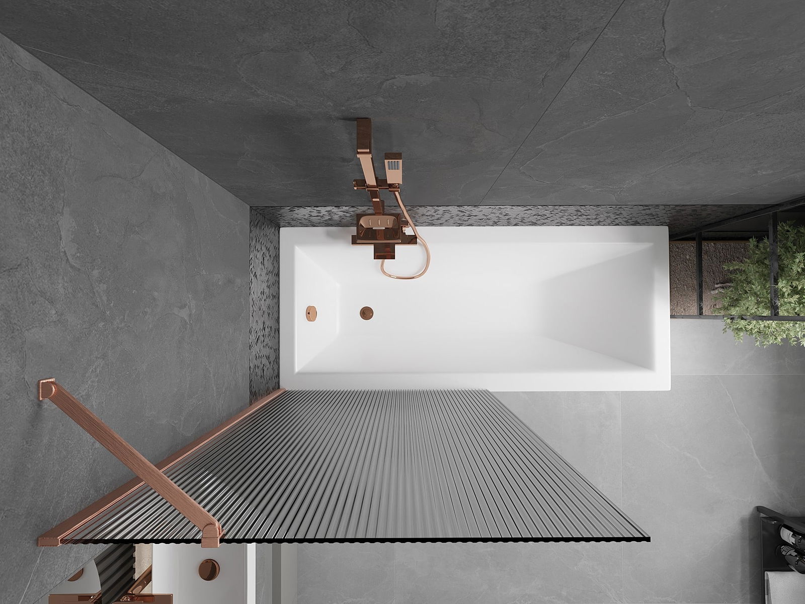 Mexen Next 1-wing bath screen 90 x 150 cm, stripes, brushed copper - 895-090-000-00-09-65